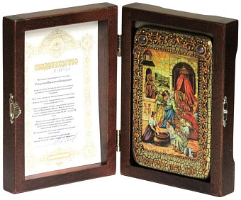 Изготовлено изделие руками талантливых мастеров из «Софийской артели». На дерево при помощи технологии УФ-печати нанесены пигментные краски. Использование качественных материалов в сочетании с современным оборудованием дают замечательный результат – красивую долговечную картину, несомненно украшающую стены жилища.