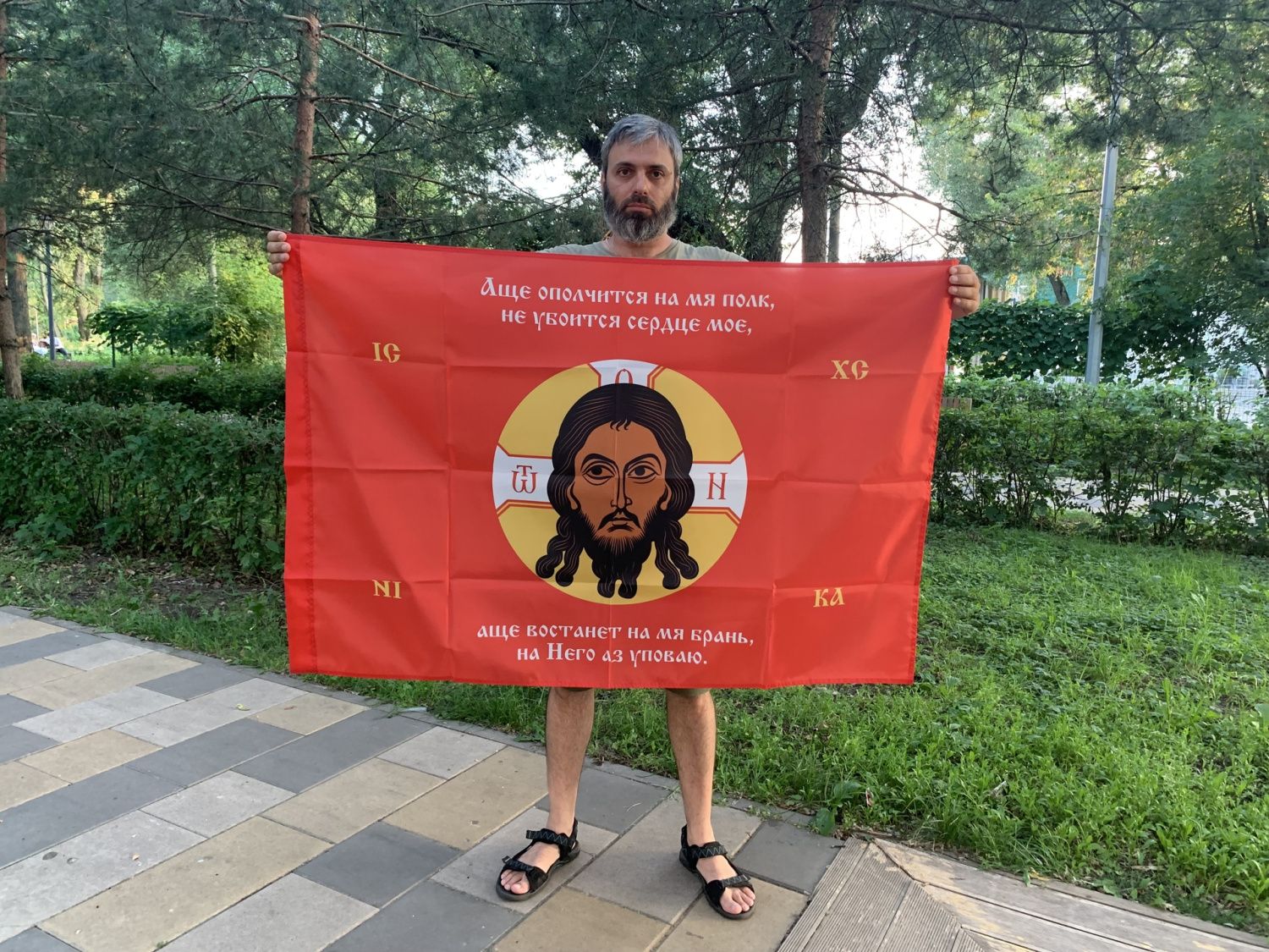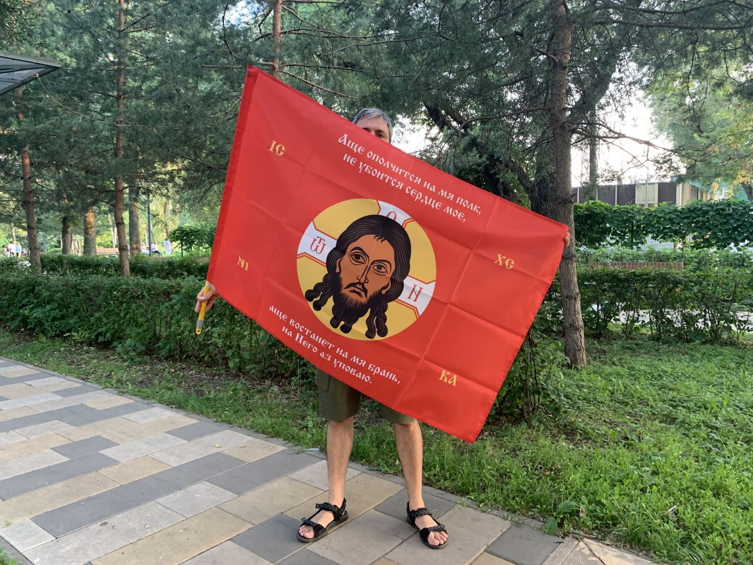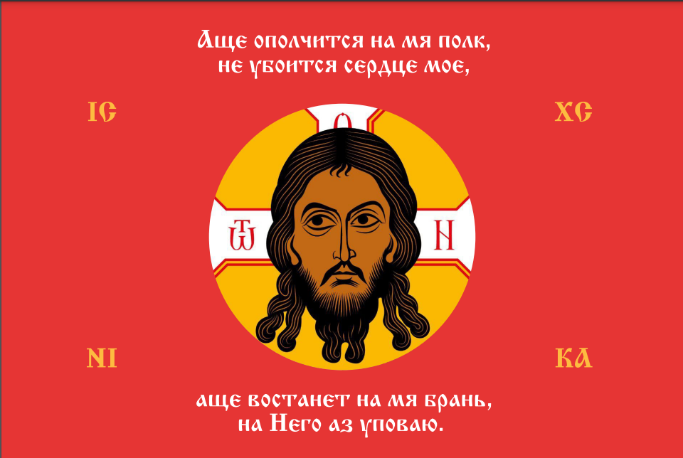 Флаг 195 Спас Нерукотворный Аще ополчится на мя полк на красном 90х135 материал шелк для помещений