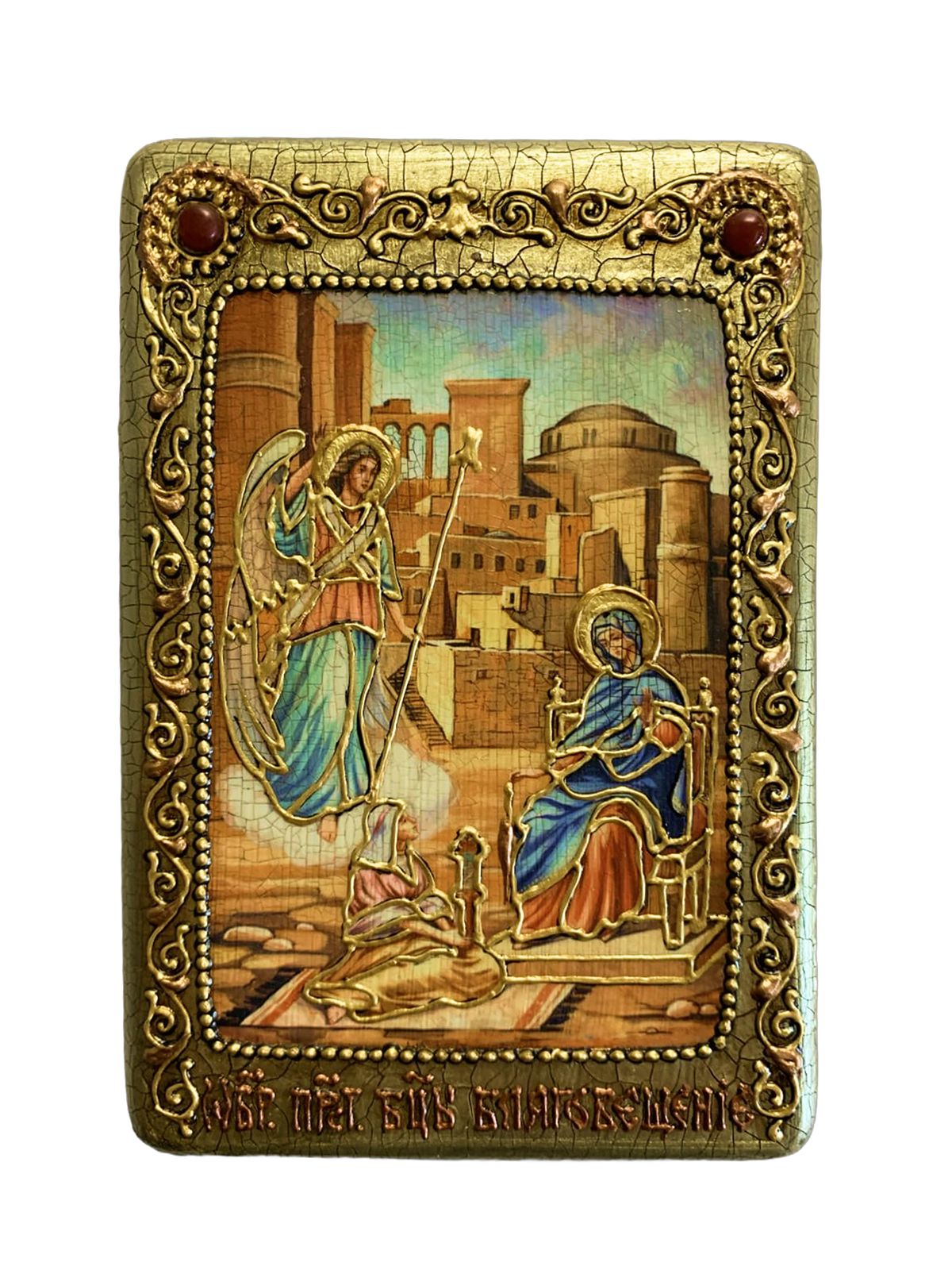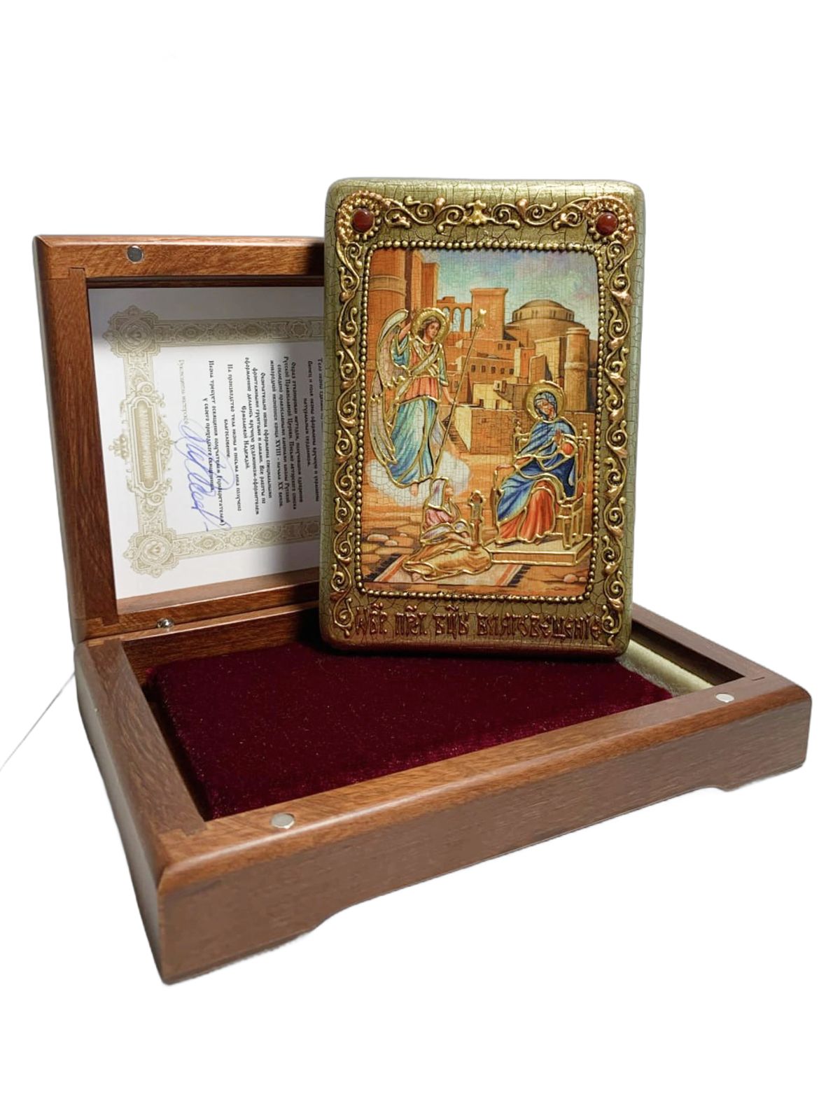 Настольная икона ''Благовещение Пресвятой Богородицы'' на мореном дубе