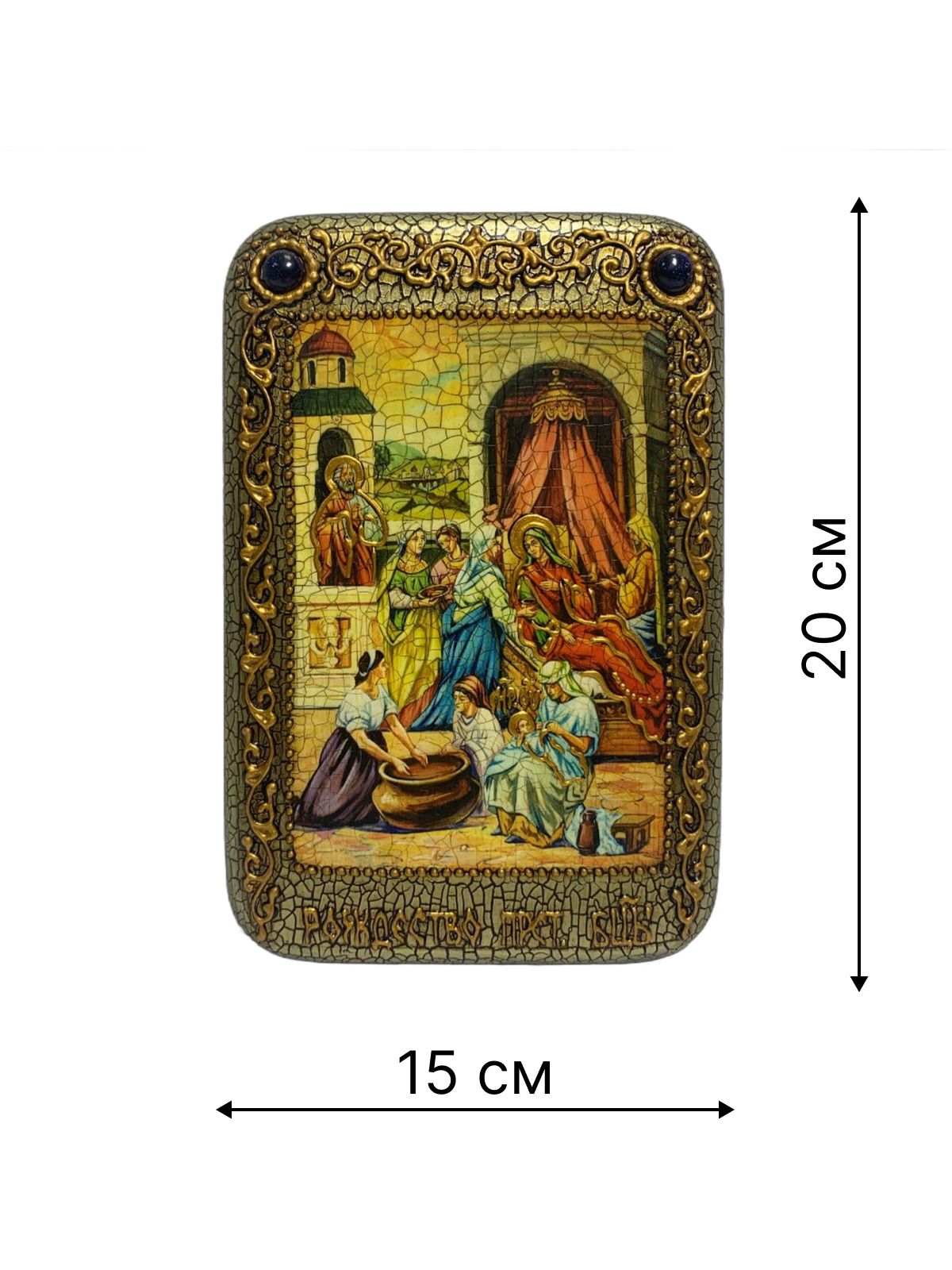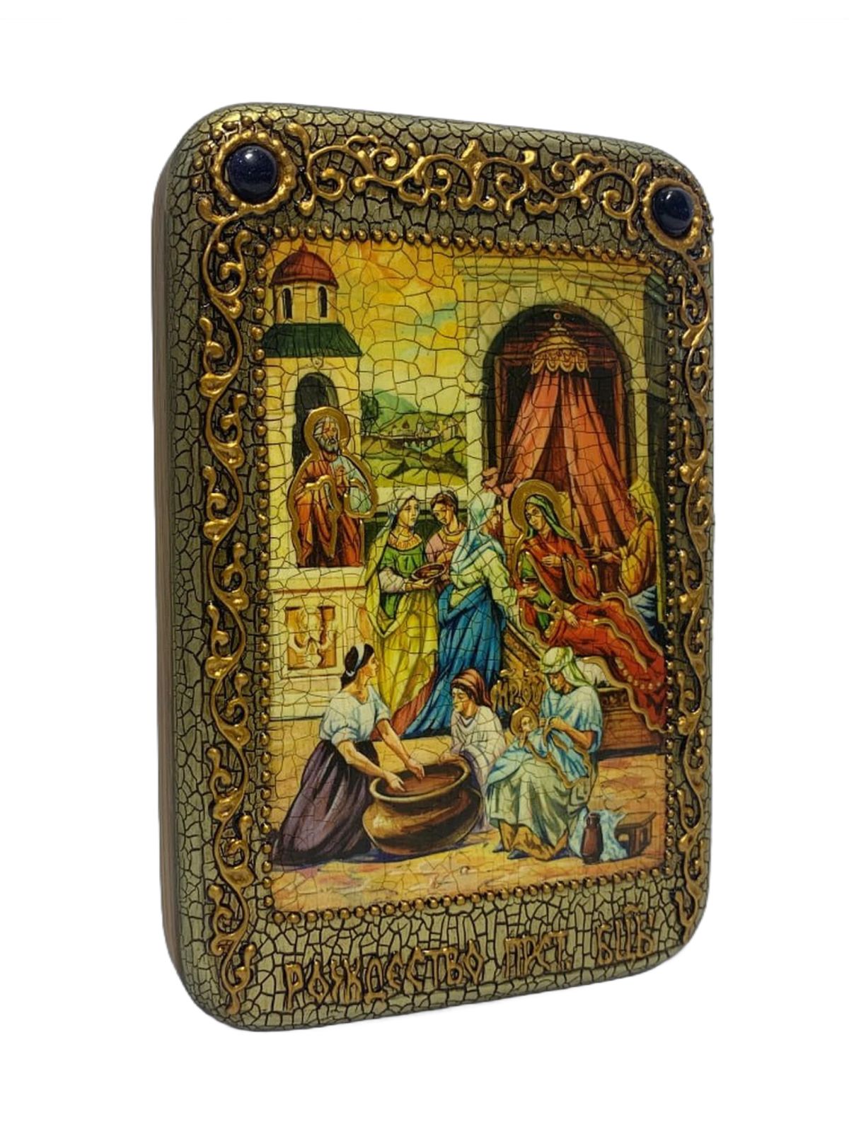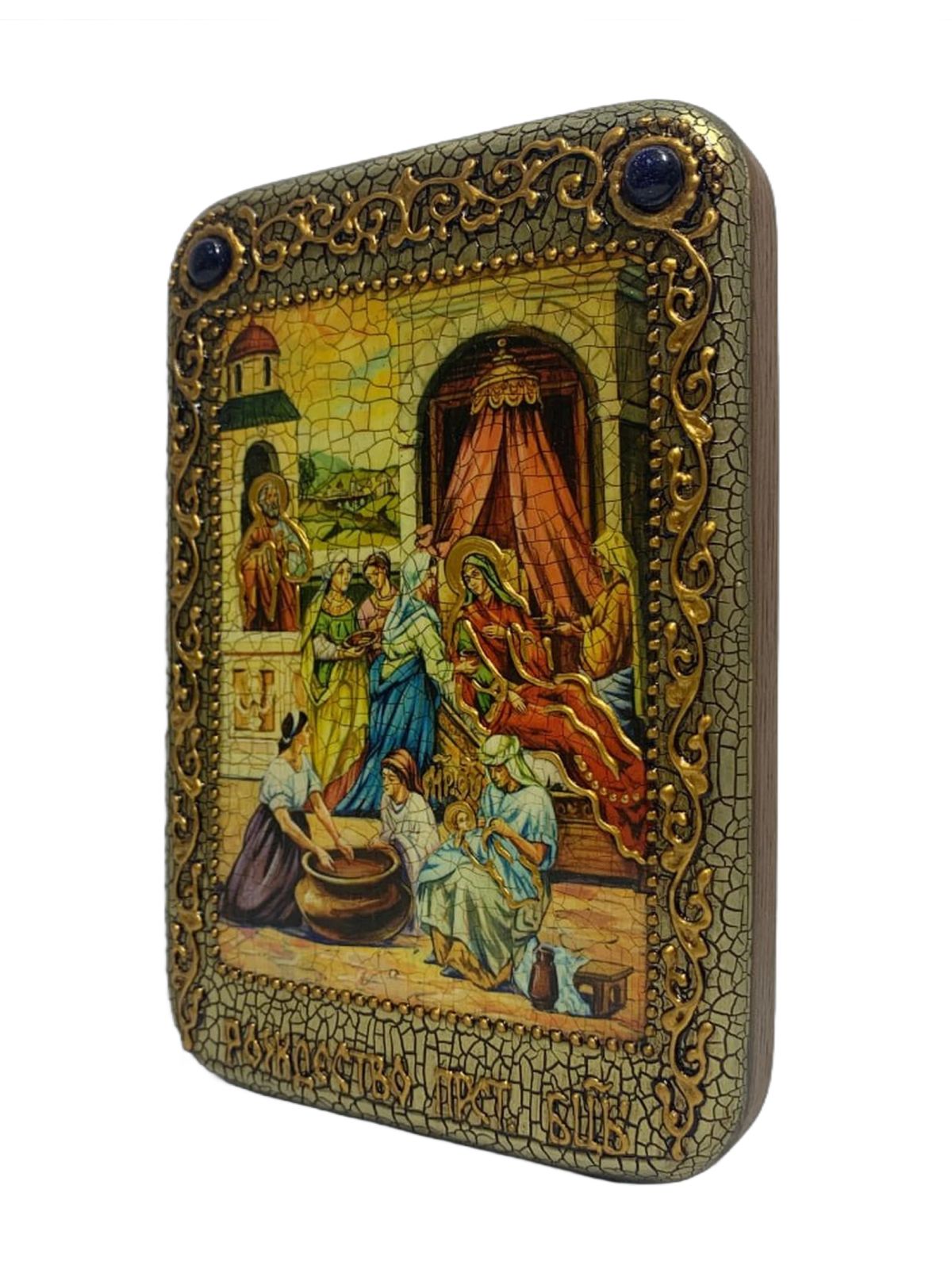 Настольная икона ''Рождество Пресвятой Богородицы'' на мореном дубе