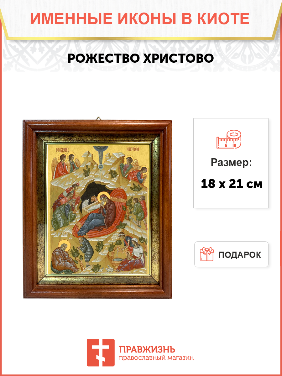 Икона 1 шт, киот-пенал со стеклом 1 шт, подарок 1 шт