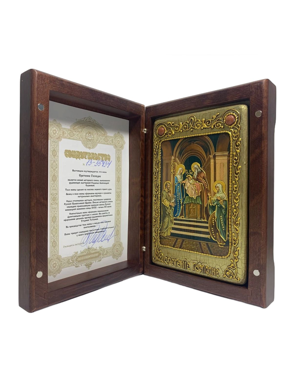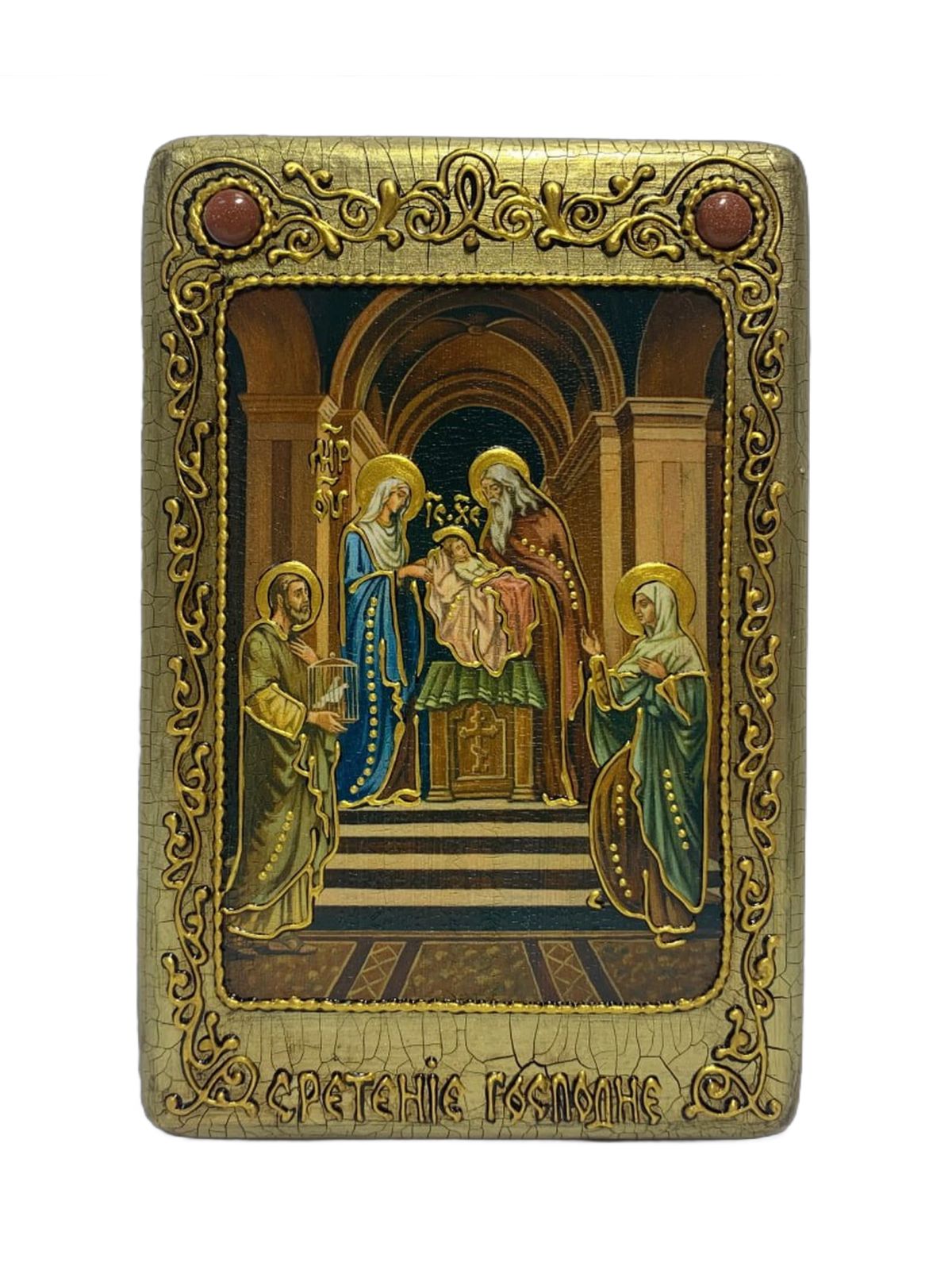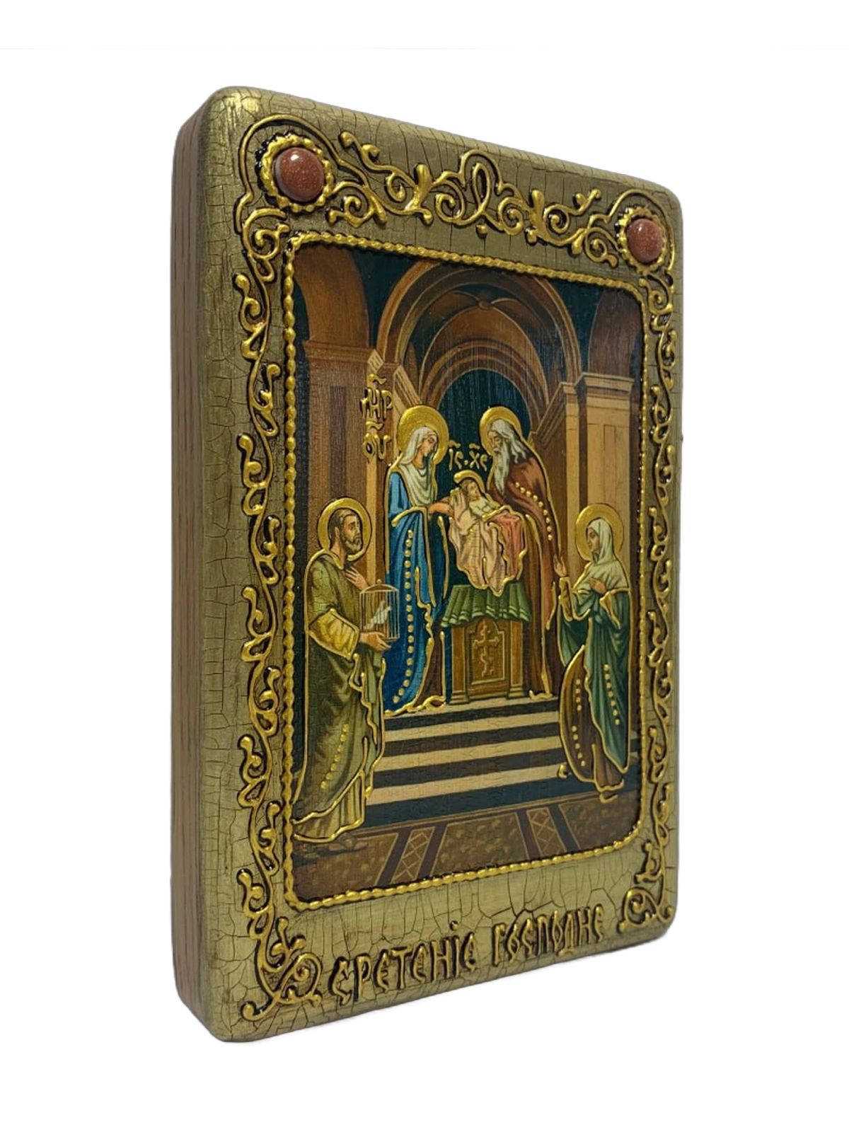 Настольная икона ''Сретение Господа нашего Иисуса Христа'' на мореном дубе