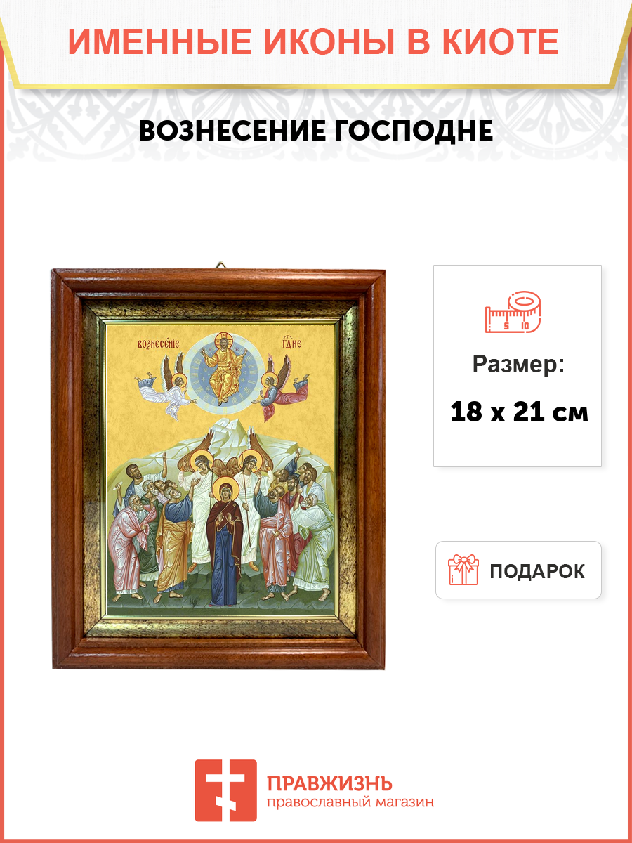 Икона 1 шт, киот-пенал со стеклом 1 шт, подарок 1 шт