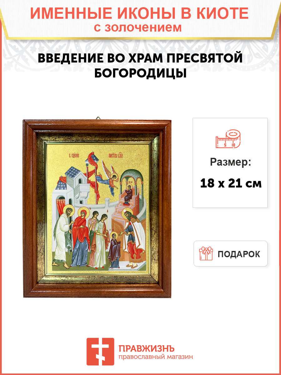 Икона 1 шт, киот-пенал со стеклом 1 шт, подарок 1 шт