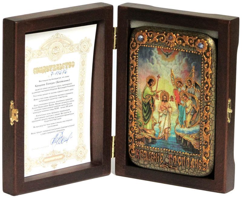 Икона ''Крещение Господне'' ручной работы в декоративном деревянном футляре