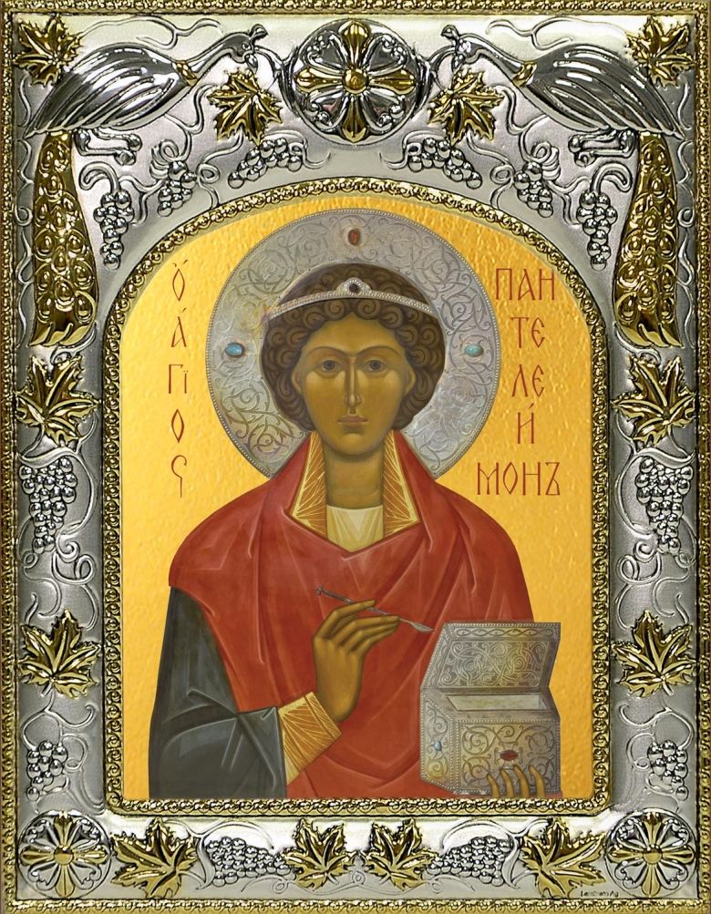 Икона ПАНТЕЛЕИМОН Целитель, Великомученик (СЕРЕБРЯНАЯ РИЗА)