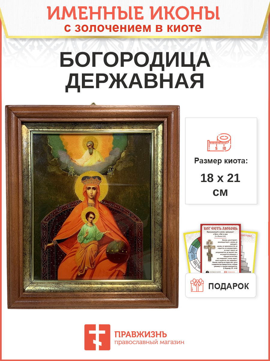 Икона 014 Державная Божия Матерь золочение поталью киот 21 см 03015-УЛ_KRA
