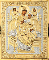 На сайте вы сможете подобрать необходимый вам вариант исполнения: вышитую бисером или гладью, в металлическом окладе или деревянном киоте. Так же доступны к индивидуальному заказу размеры образа. Вы можете приобрести небольшой образ, как для дома, так и в дар приходу для украшения иконостаса или стен храма.