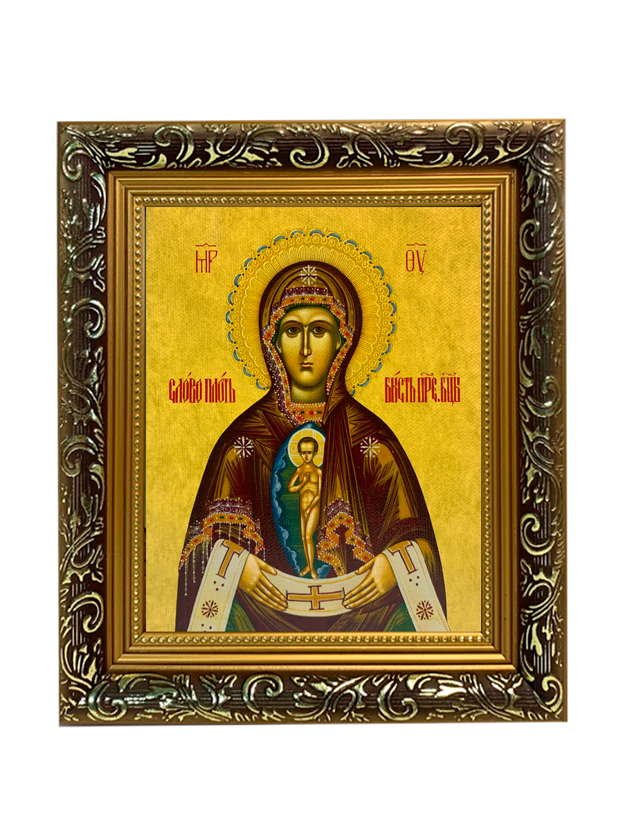 Икона Албазинская Слово Плоть Бысть Божия Матерь на холсте в киоте