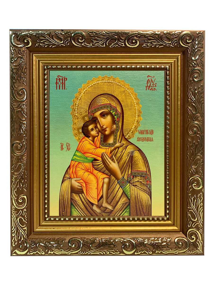 Икона Феодоровская Божия Матерь на холсте в киоте 1105