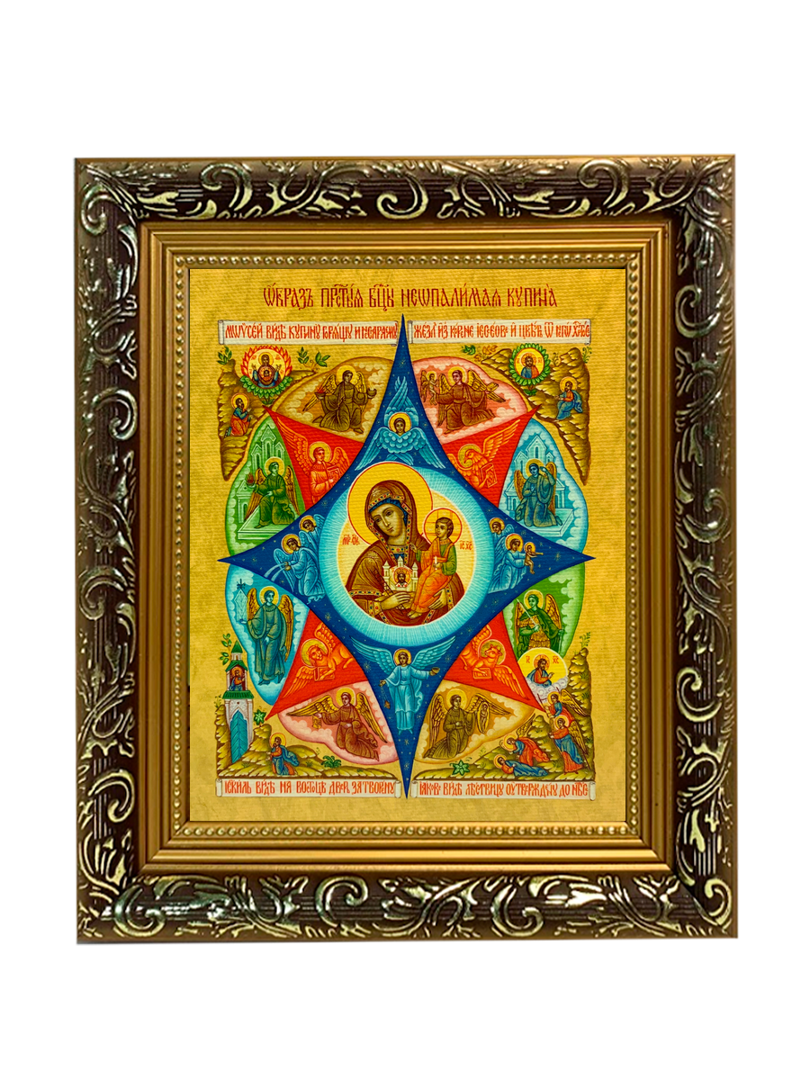 Икона Неопалимая Купина Божия Матерь на холсте в киоте 181