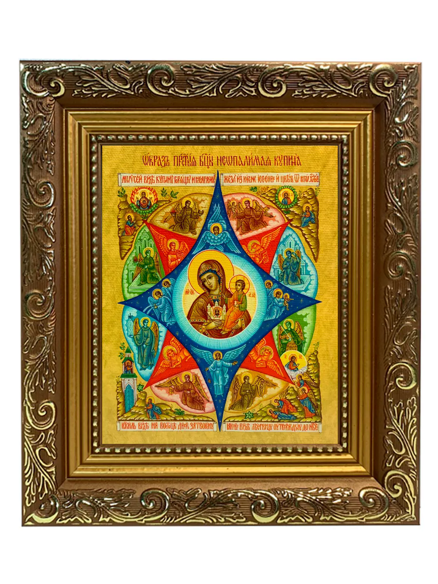 Икона Неопалимая Купина Божия Матерь на холсте в киоте 181