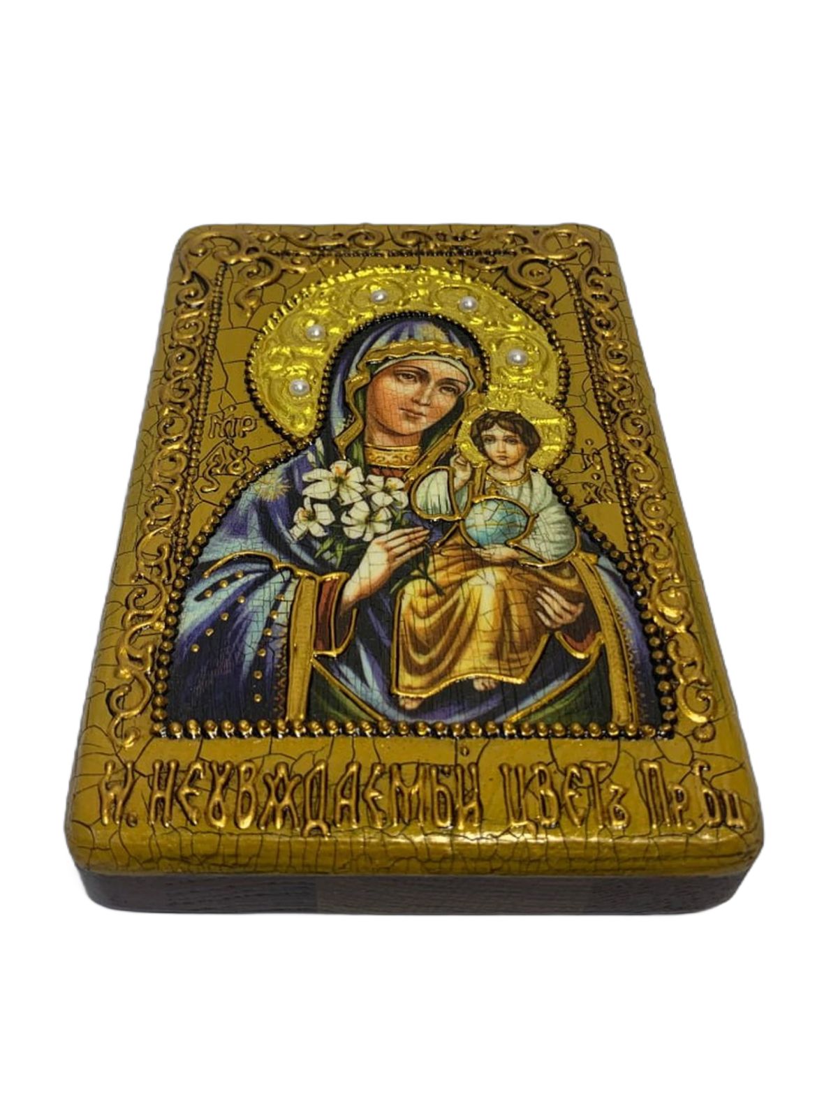 Икона Пресвятой Богородицы НЕУВЯДАЕМЫЙ ЦВЕТ (ПОДАРОЧНАЯ, РУЧНАЯ РАБОТА)