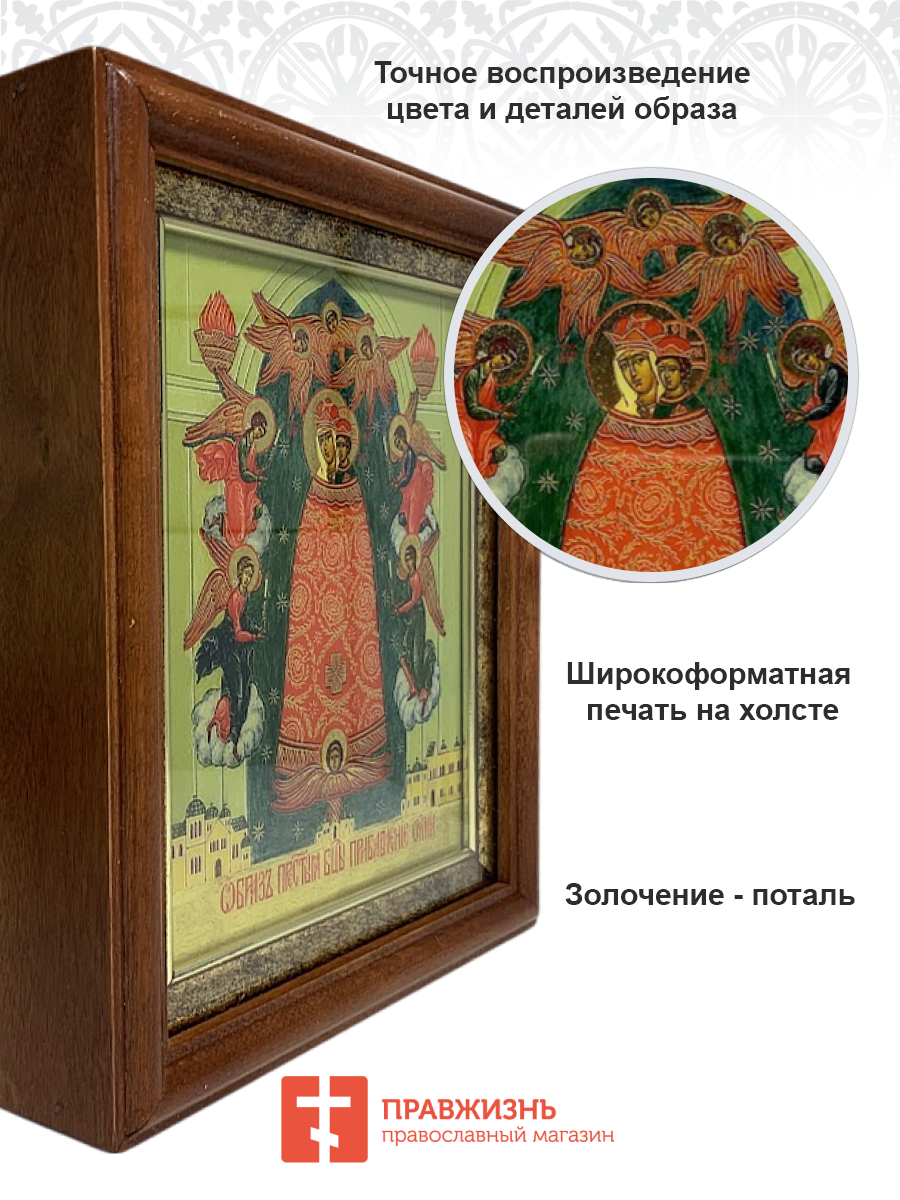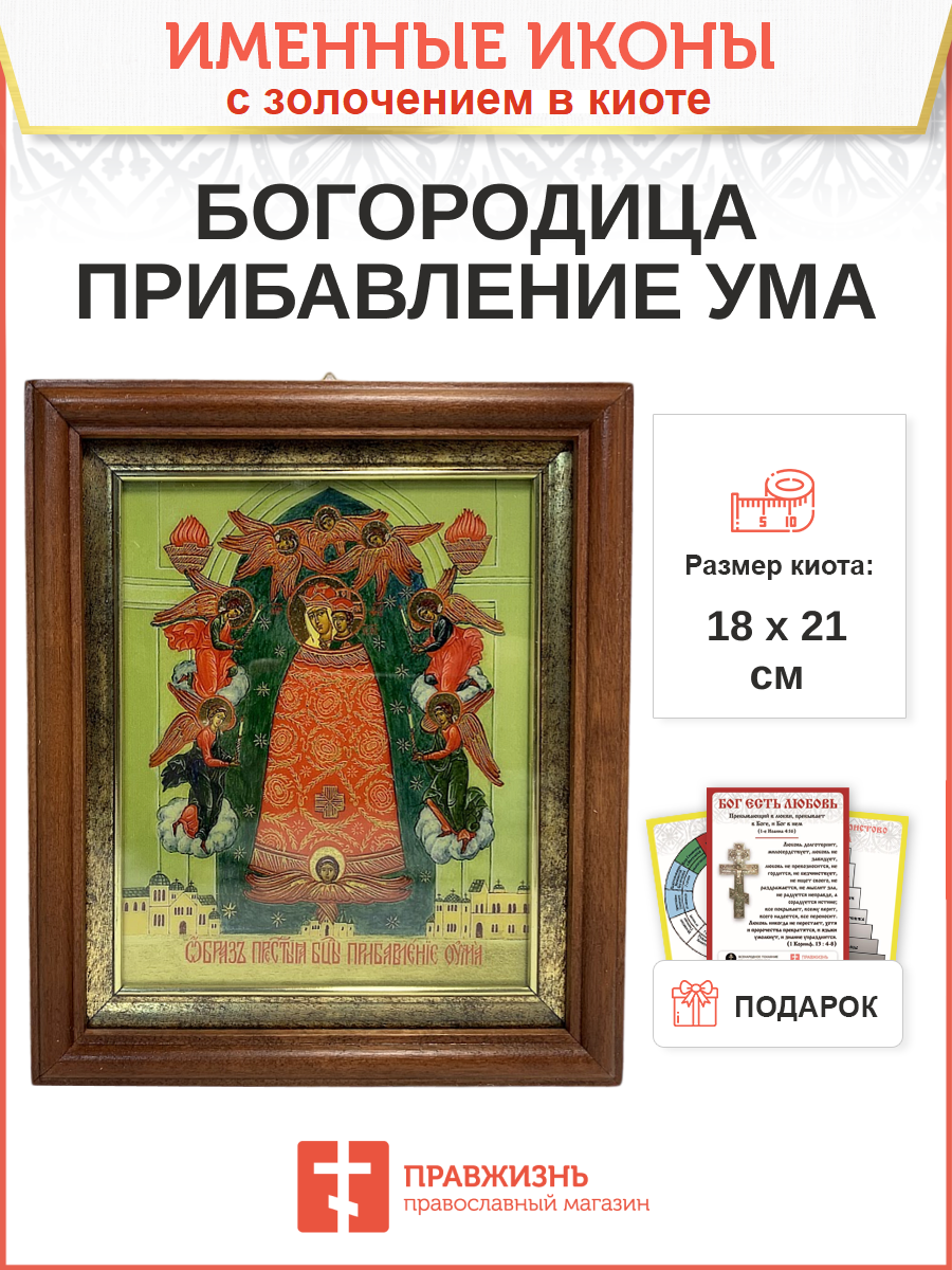 Икона 122 Прибавление ума Божия Матерь золочение поталью киот 21 см 03062-УЛ_KRA