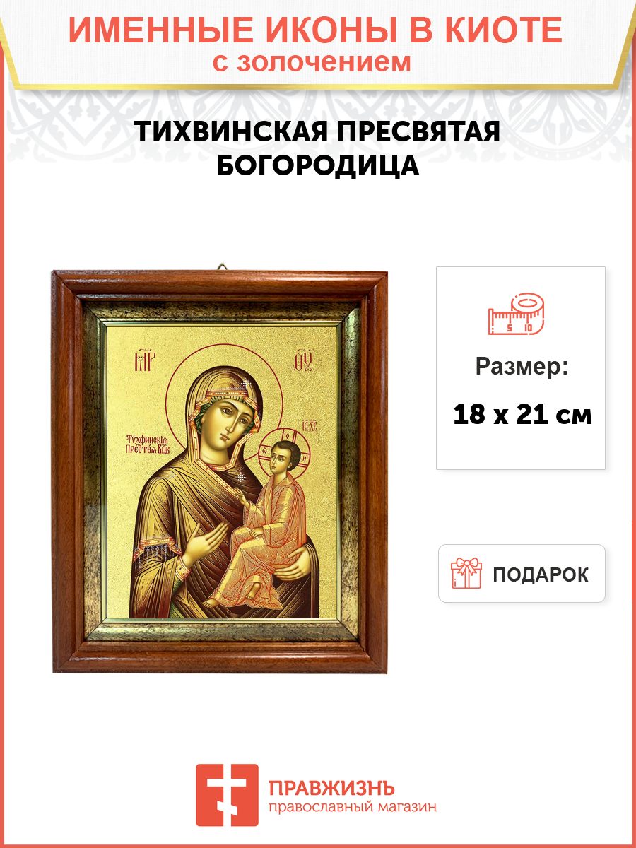 Икона 1 шт, киот-пенал со стеклом 1 шт, подарок 1 шт