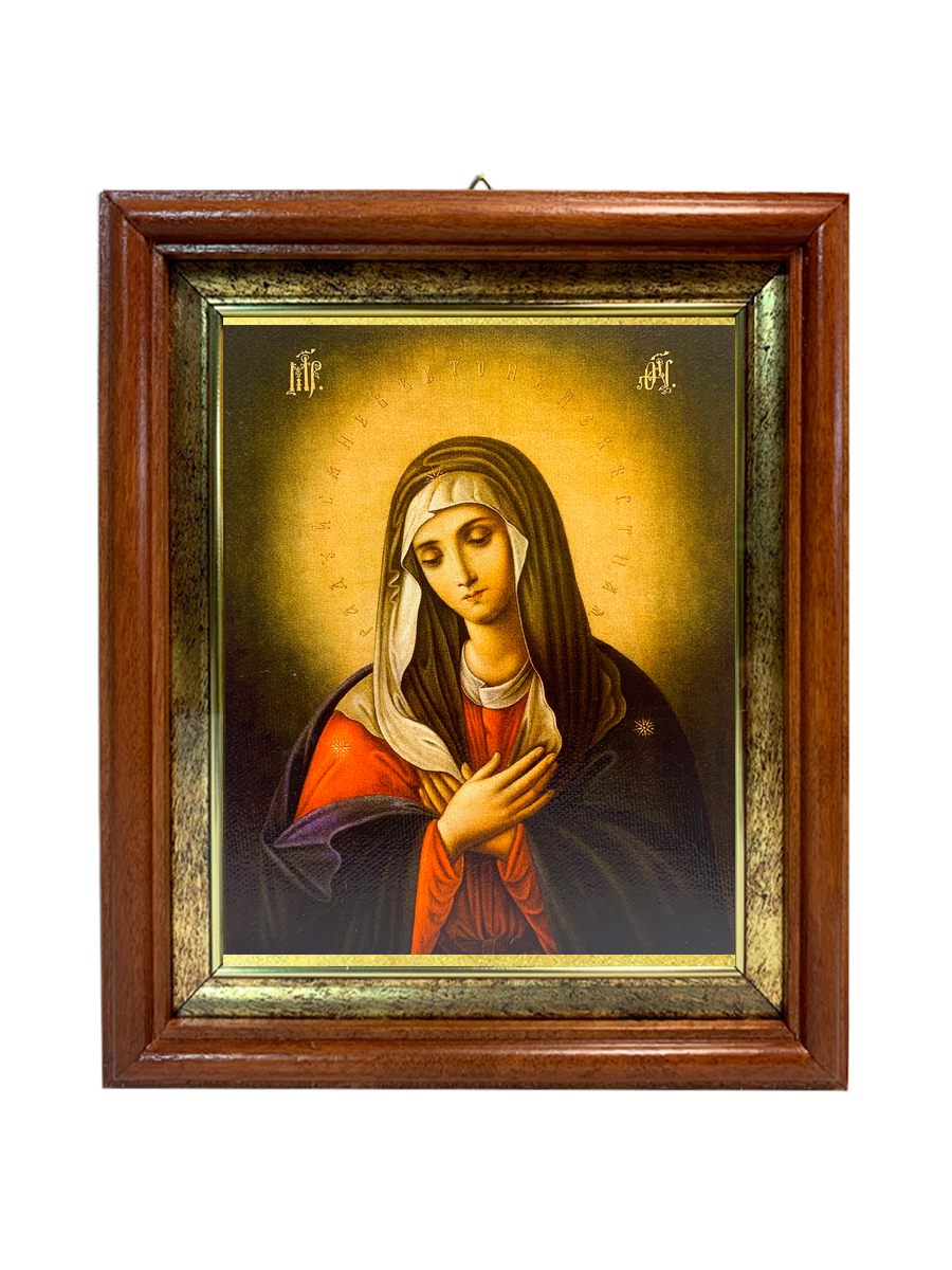 Икона Умиление Божия Матерь на холсте в киоте 141