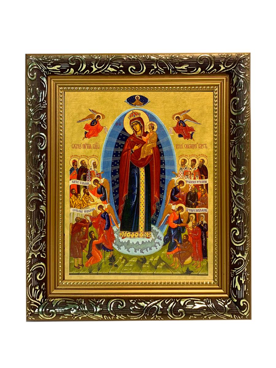 Икона Всех скорбящих Радость Божия Матерь на холсте в киоте 153