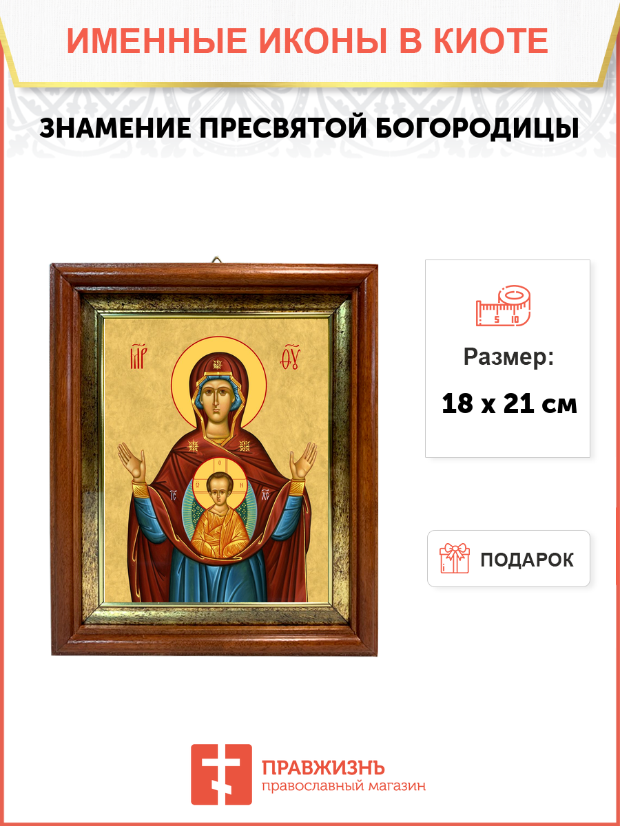 Икона 1 шт, киот-пенал со стеклом 1 шт, подарок 1 шт