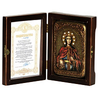 Купить именную икону Екатерины Великомученицы в подарок можно на крещение, именины или при желании поддержать родных и близких, столкнувшихся с трудностями. Особенно уместным в этом случае будет небольшой образок в защищающем лик от повреждений футляре из морёного дуба, перед которым можно помолиться в пути или на рабочем месте.