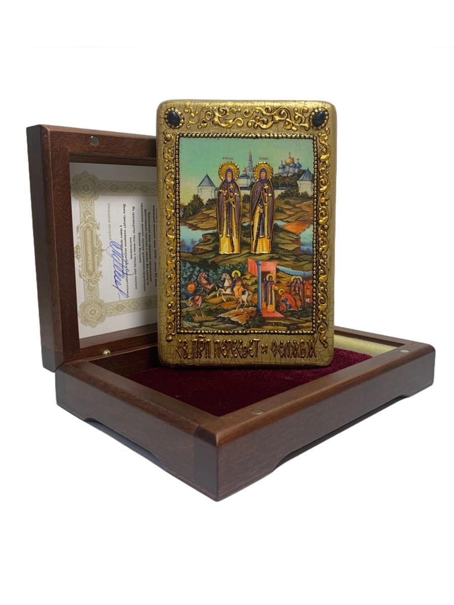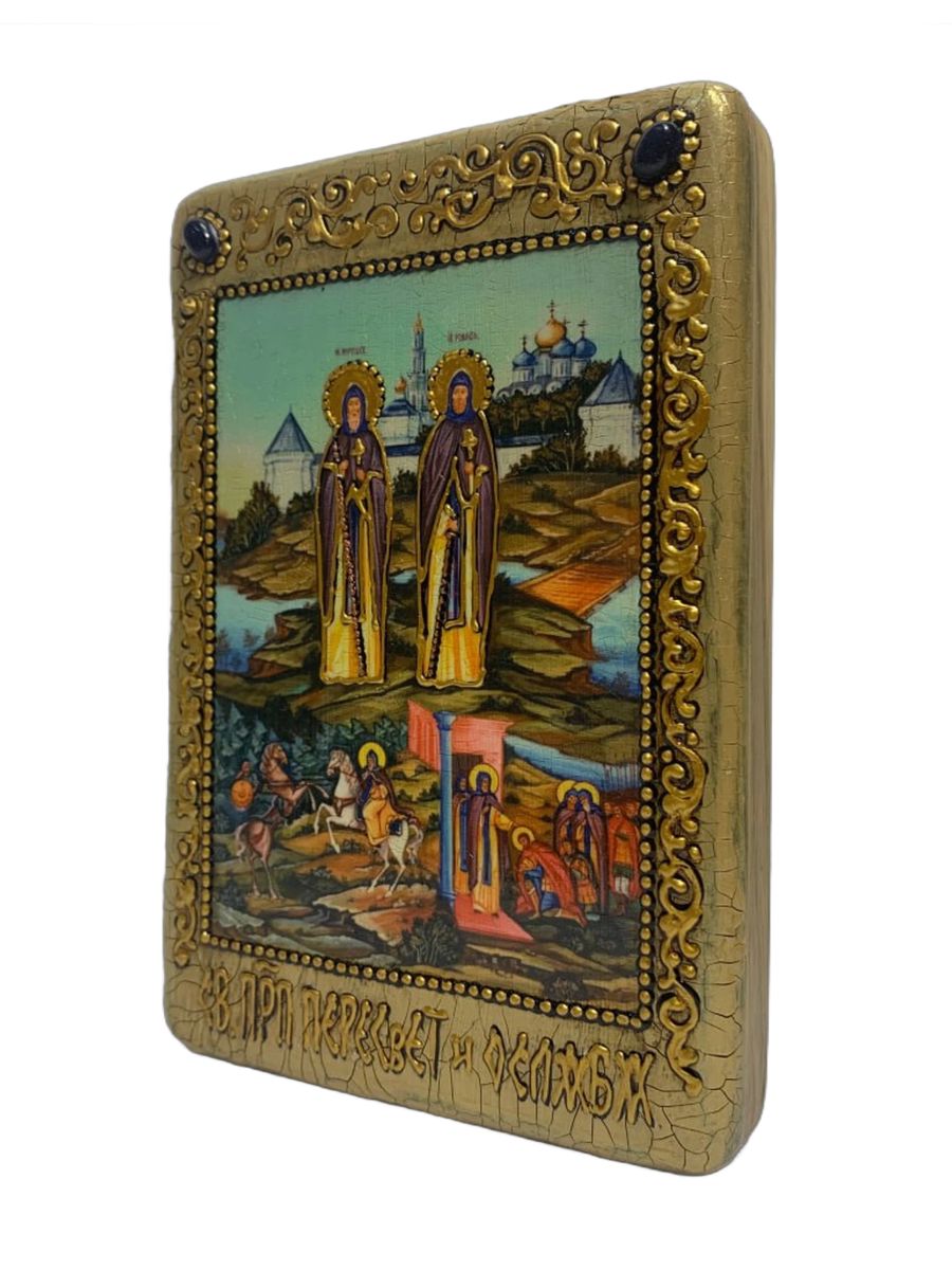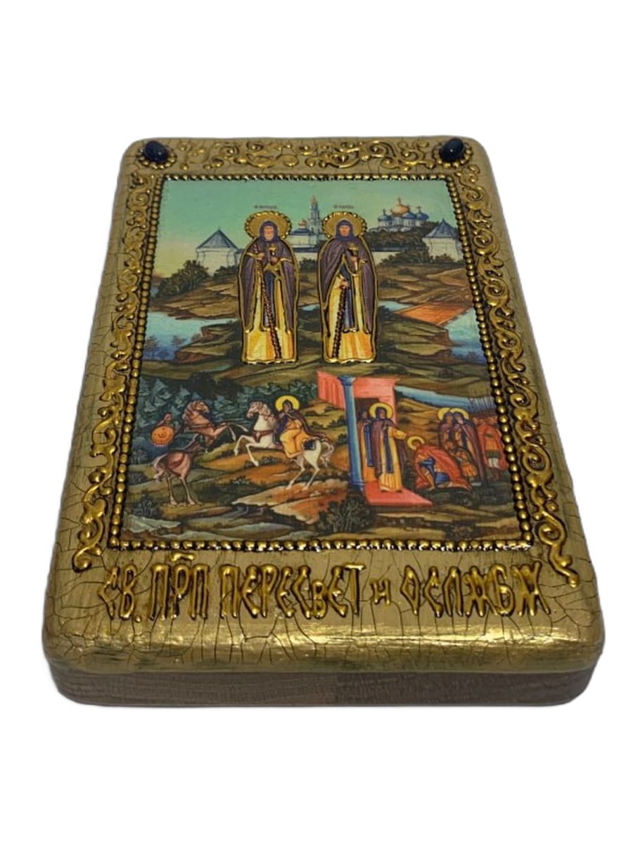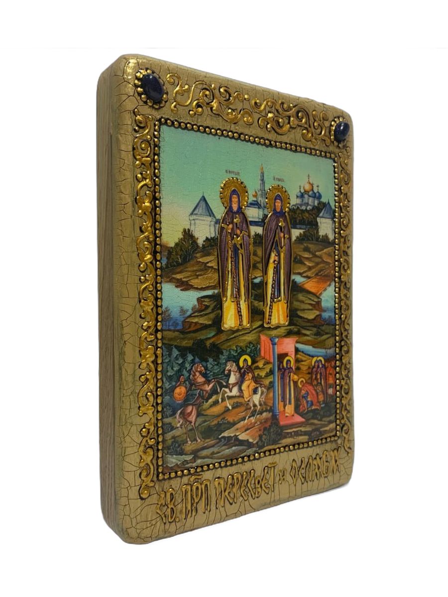Настольная икона ''Святые преподобные Александр (Пересвет) и Андрей (Ослябя) Радонежские'' на морено