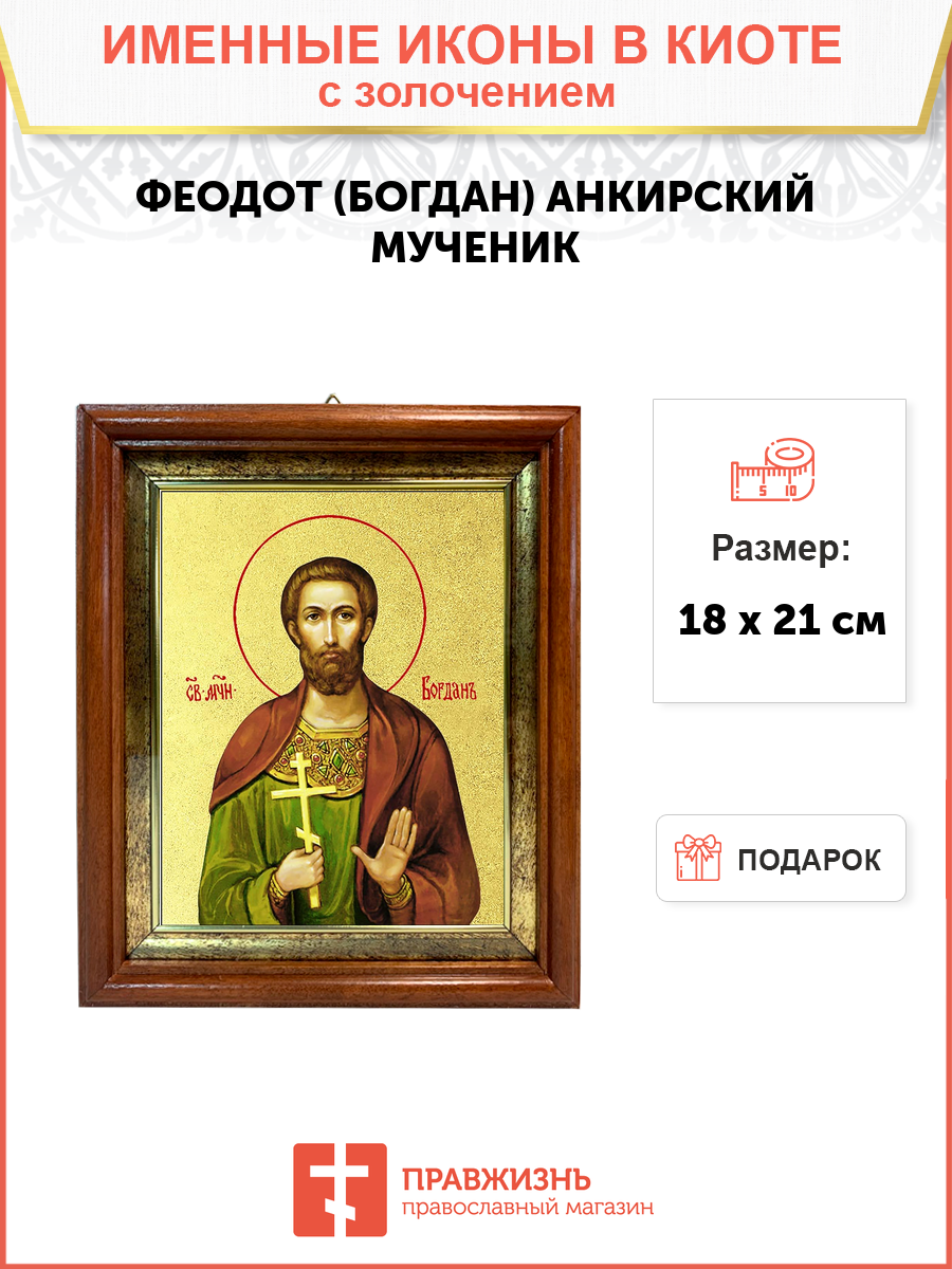 Икона "Феодот (Богдан) Адрианопольский", св. мч., с золочением поталью, 09Ф2-УЛ