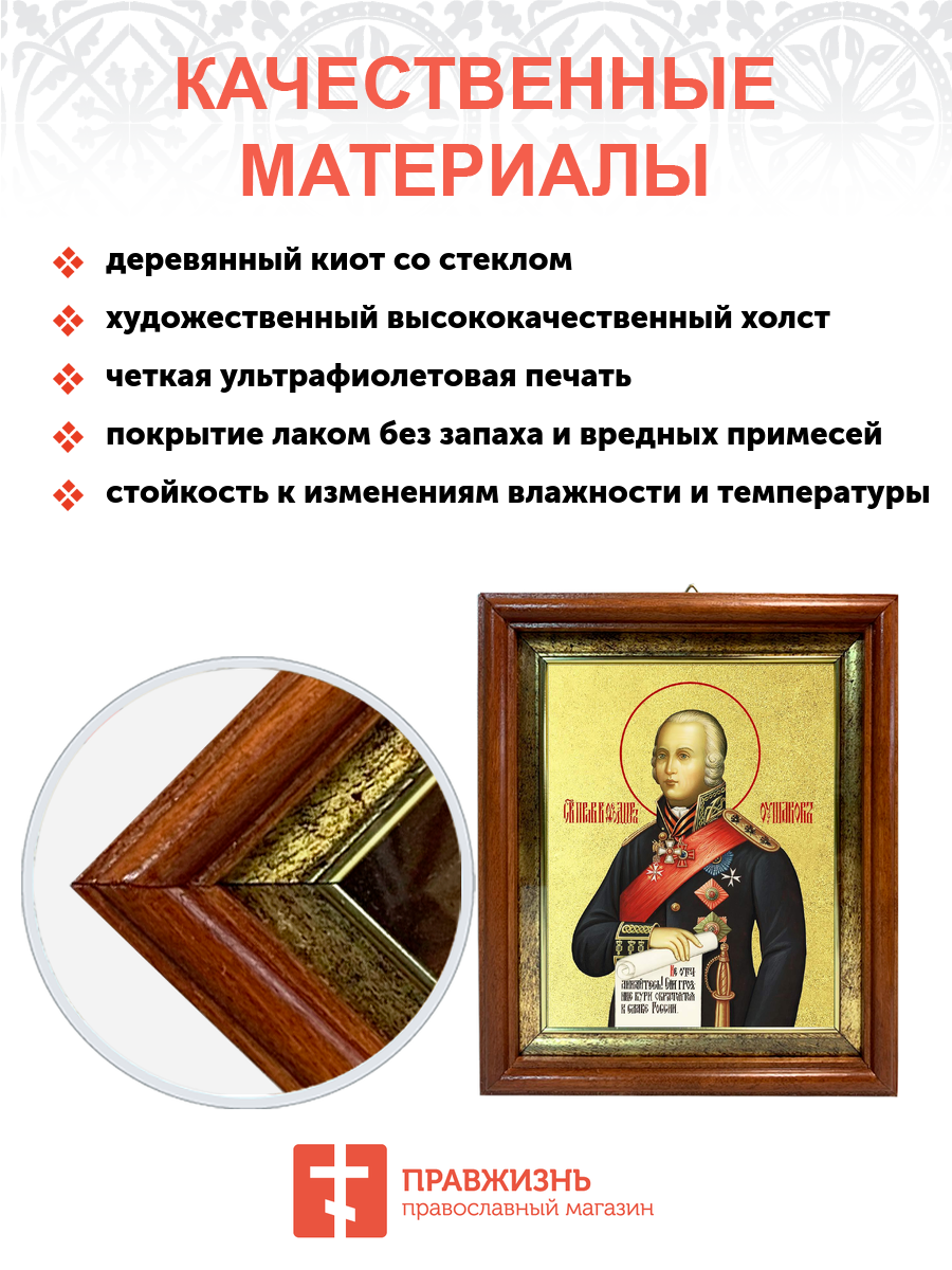 Икона "Феодор Ушаков", св. прав., воин, с золочением поталью, 09Ф1-УЛ
