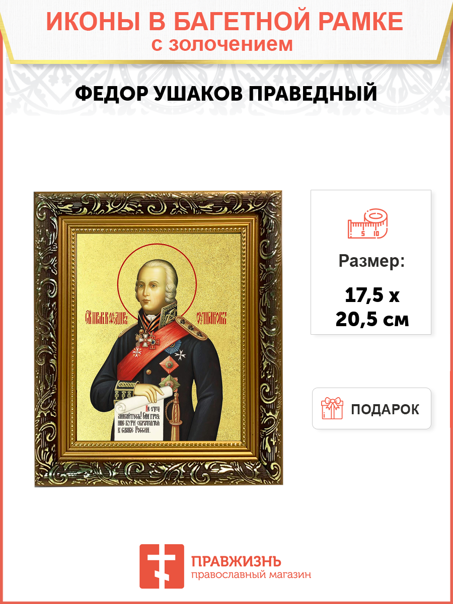Икона "Феодор Ушаков", св. прав., воин, с золочением поталью, 09Ф1-УЛ