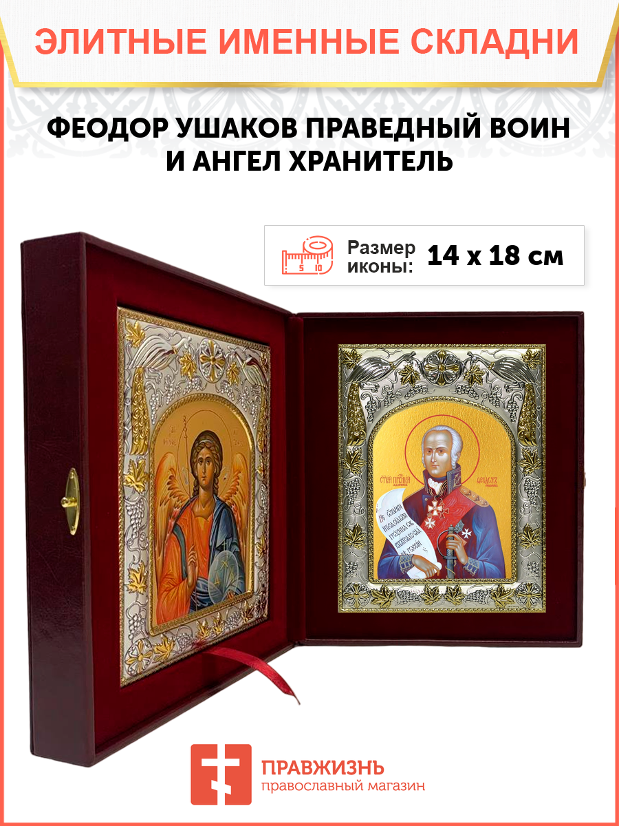 Икона складень Феодор Ушаков воин и Ангел Хранитель 144