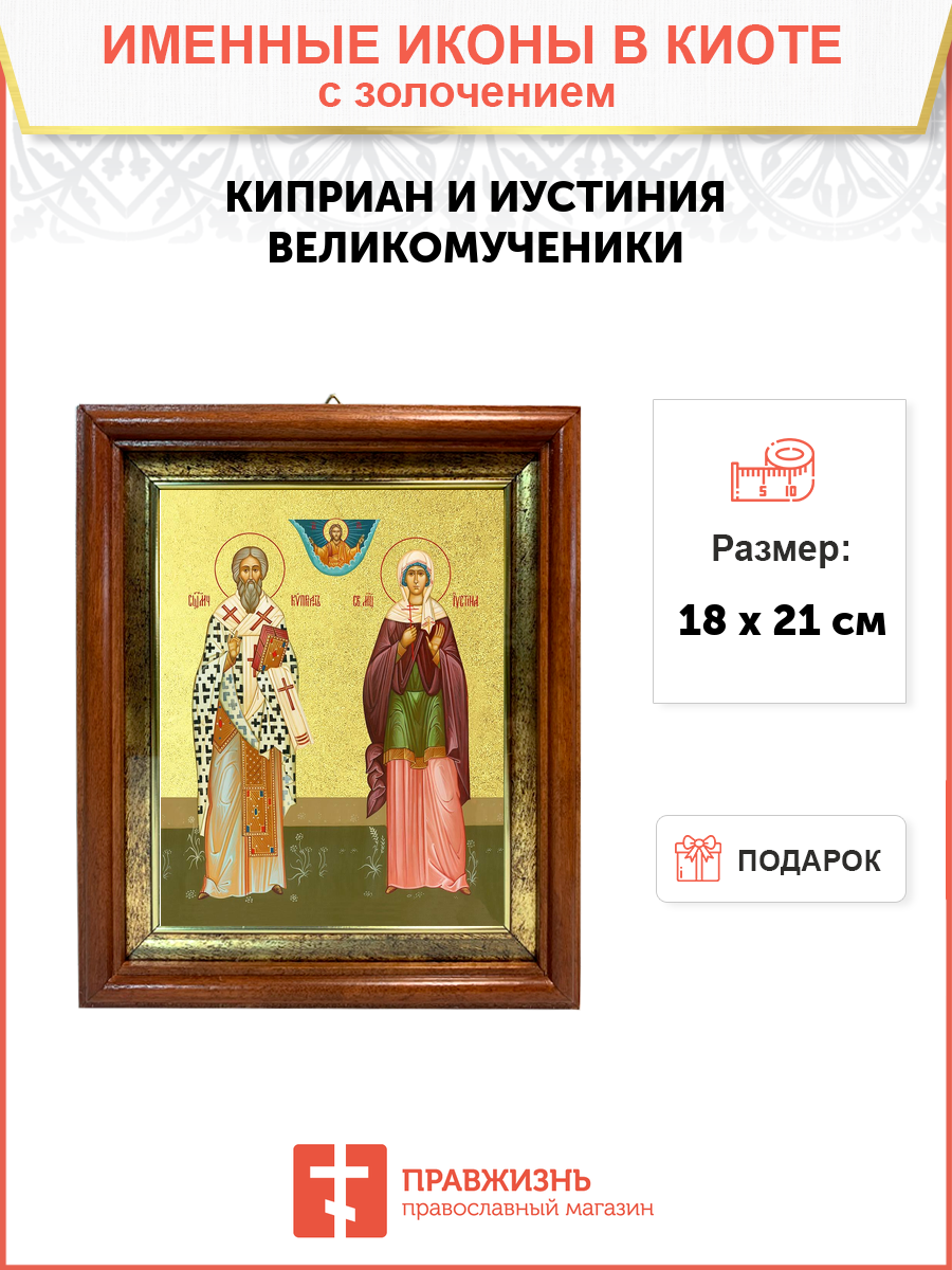 Икона "Киприан и Иустиния", свв. мчч., с золочением поталью, 09056-УЛ