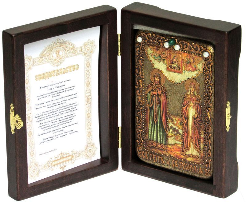 Настольная икона ''Петр и Февронья'' на мореном дубе