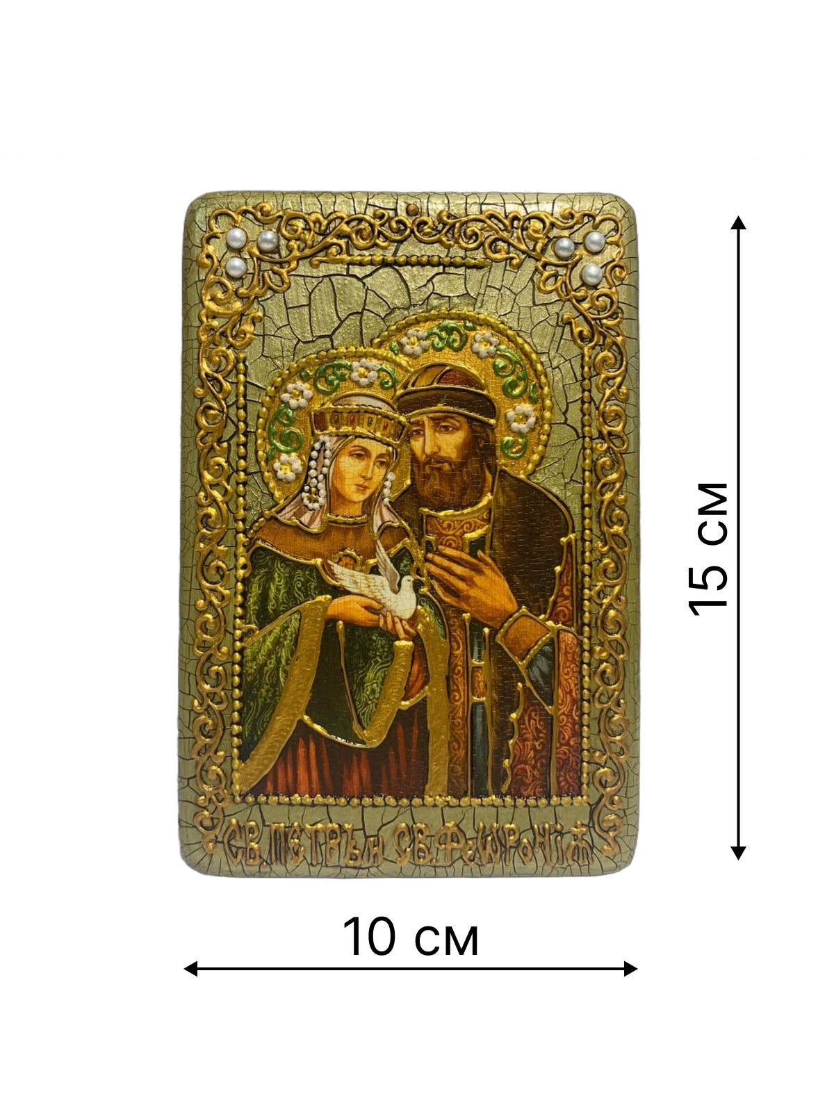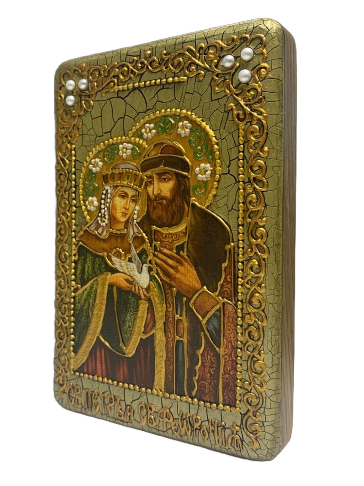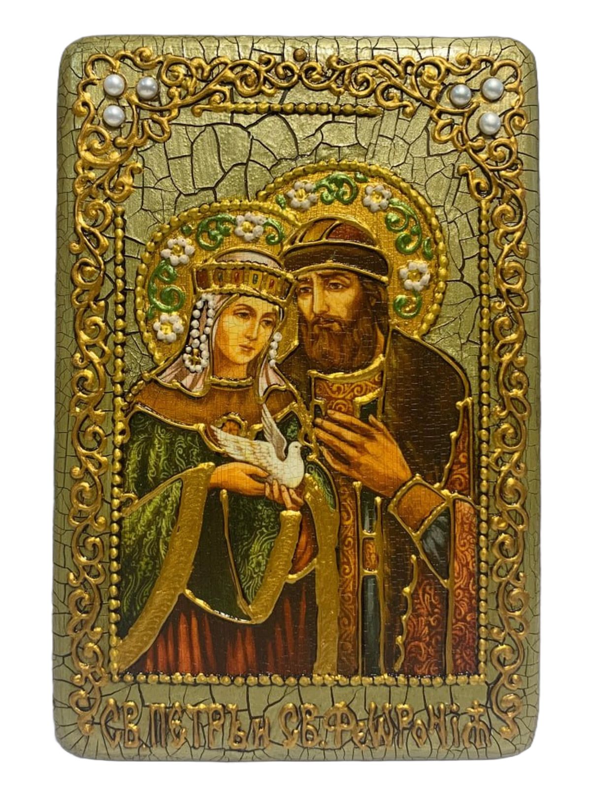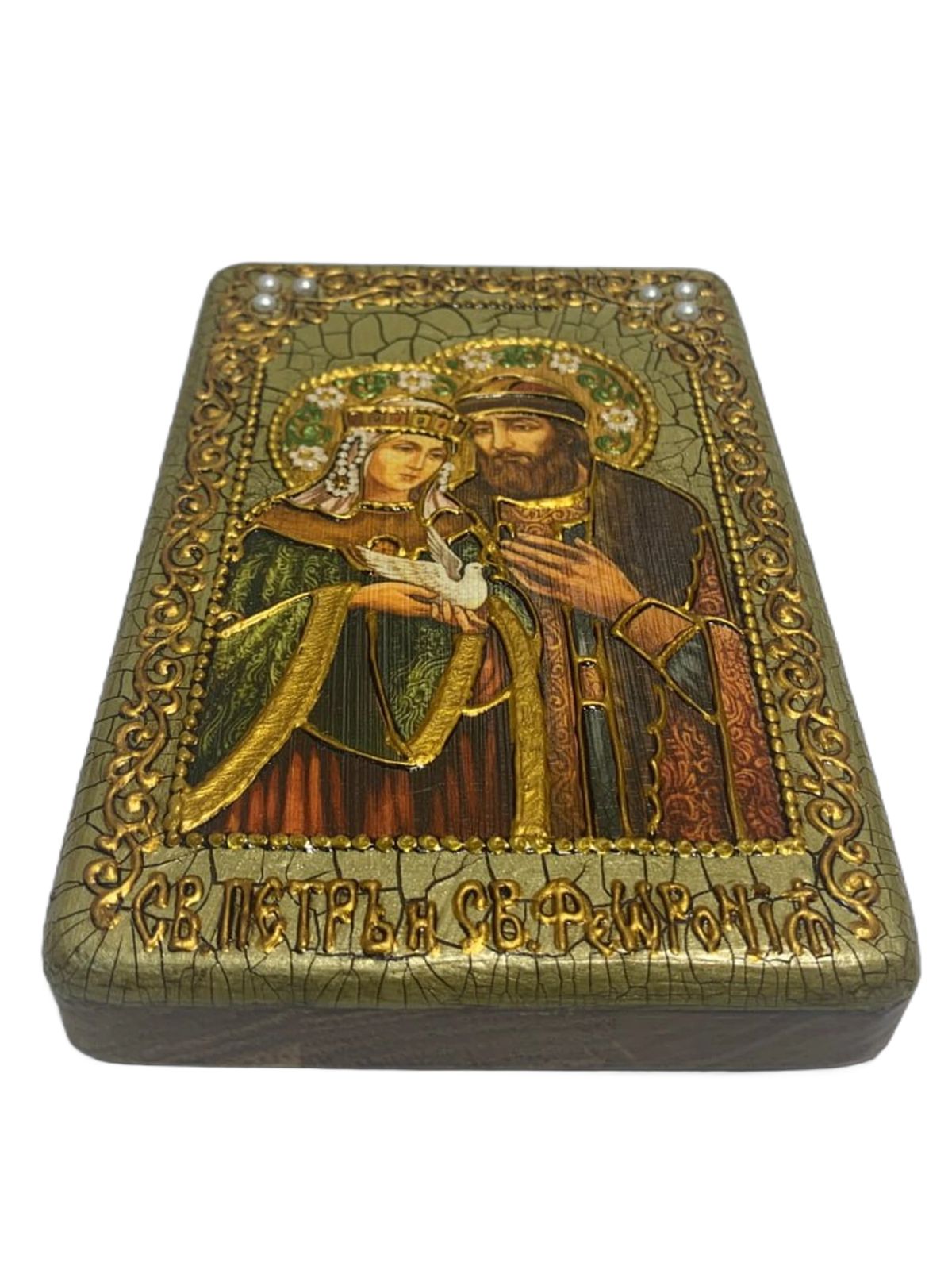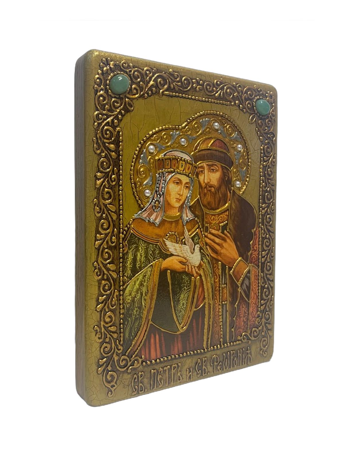 Настольная икона ''Петр и Февронья'' на мореном дубе