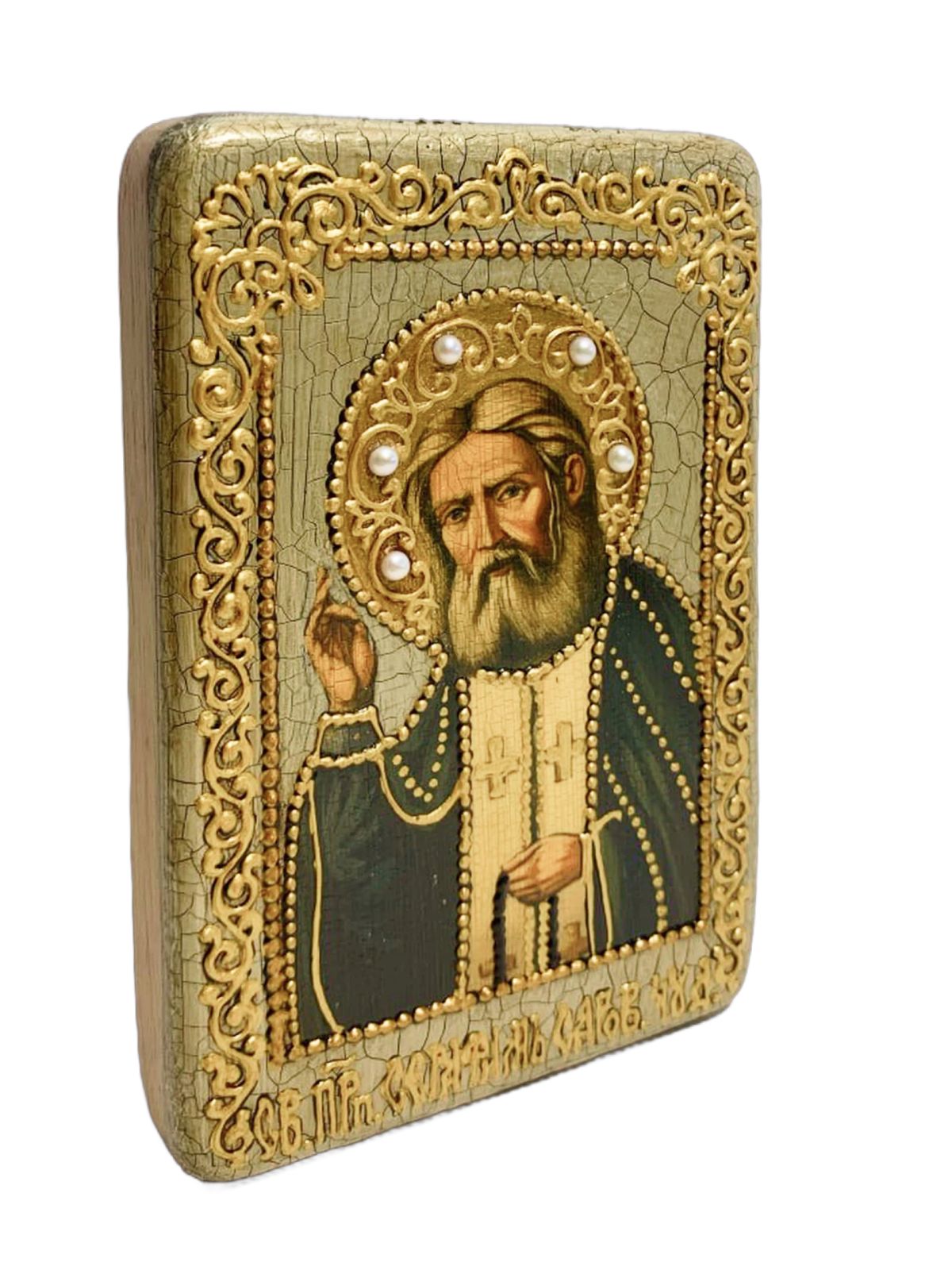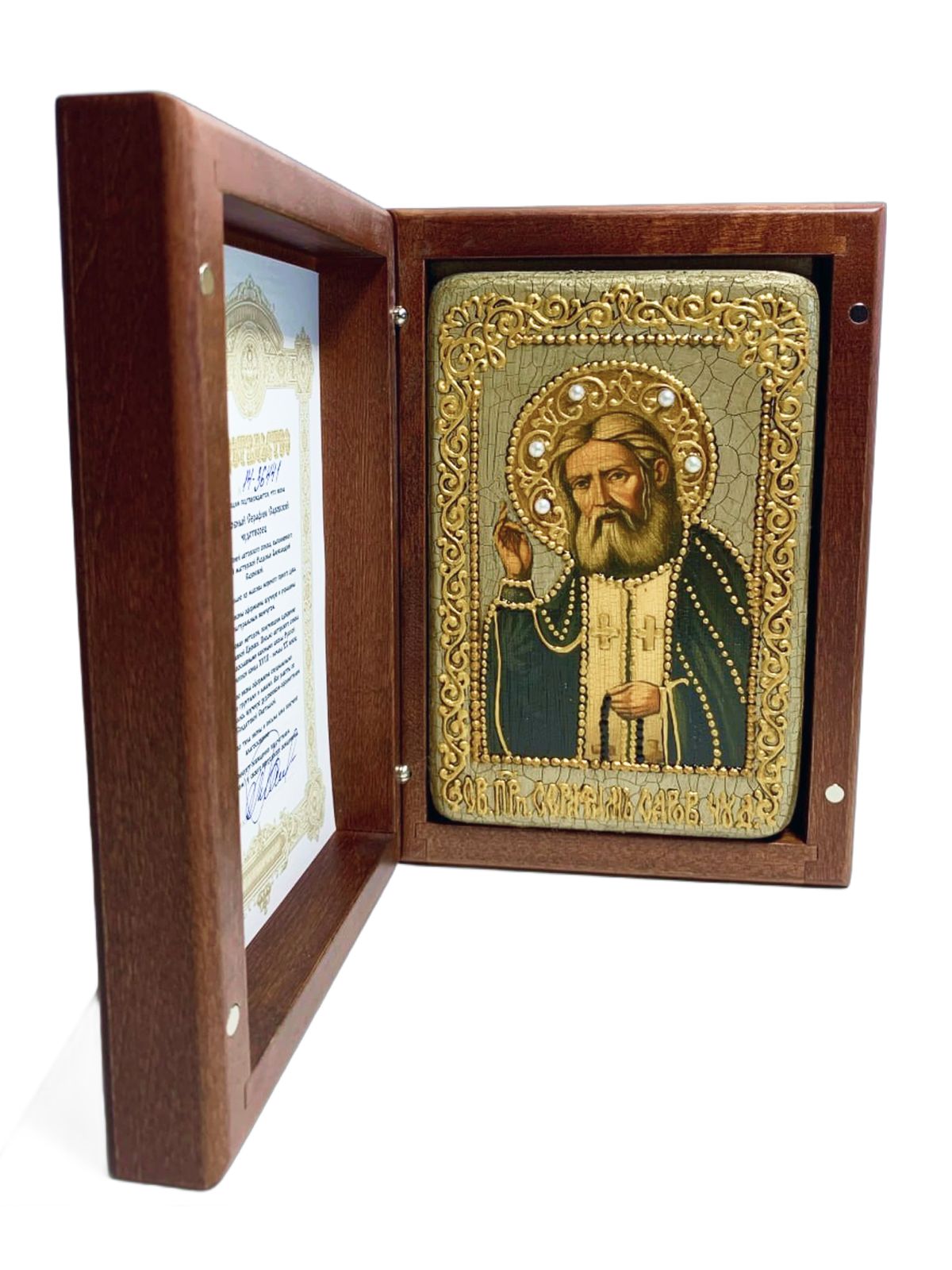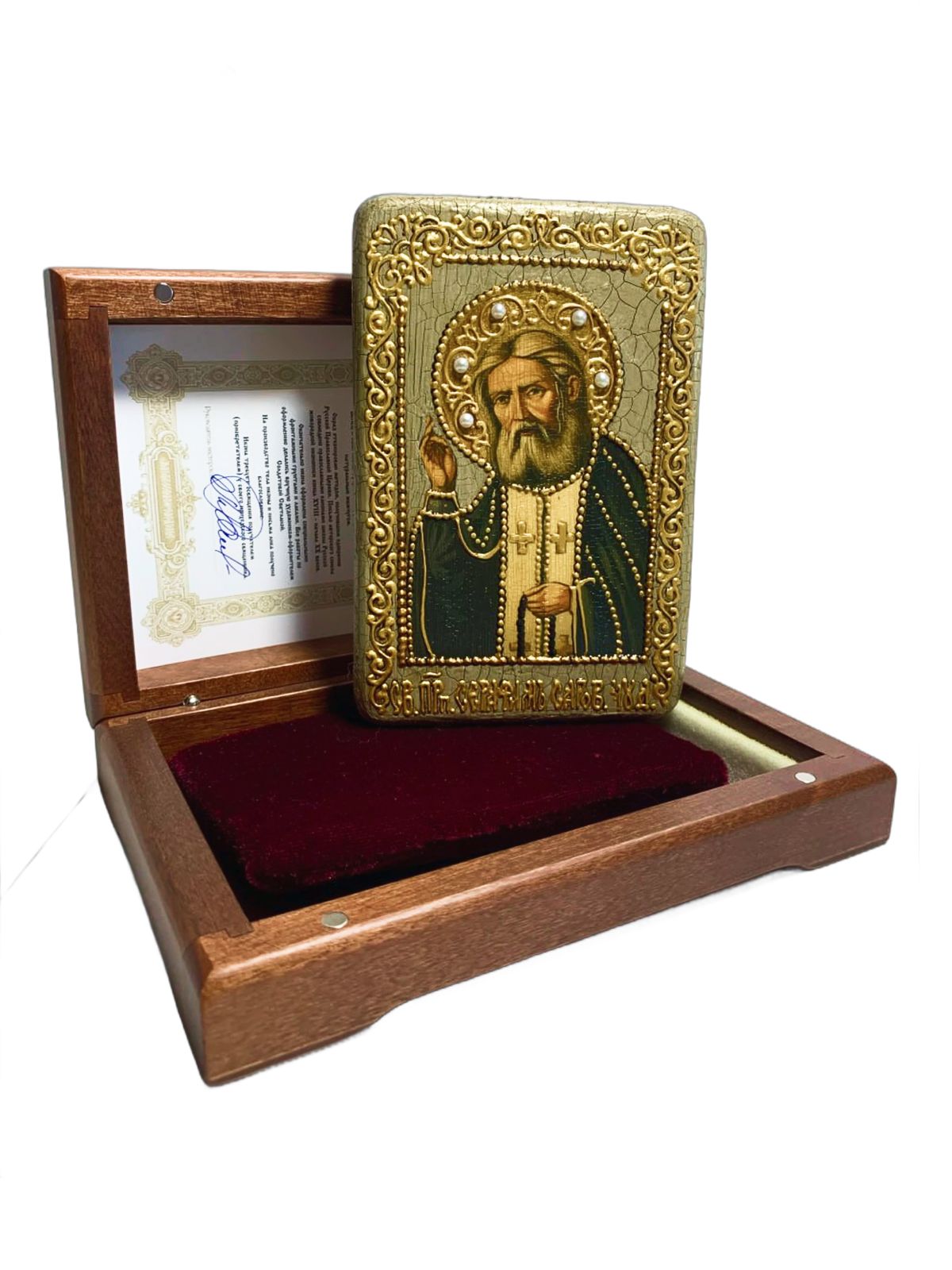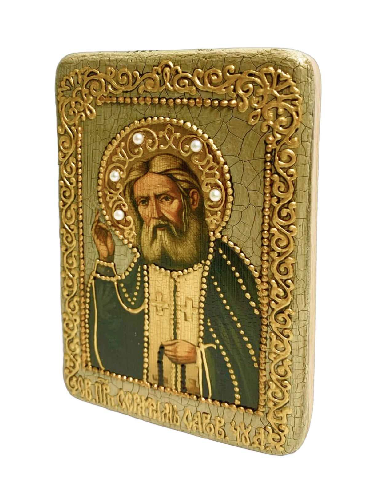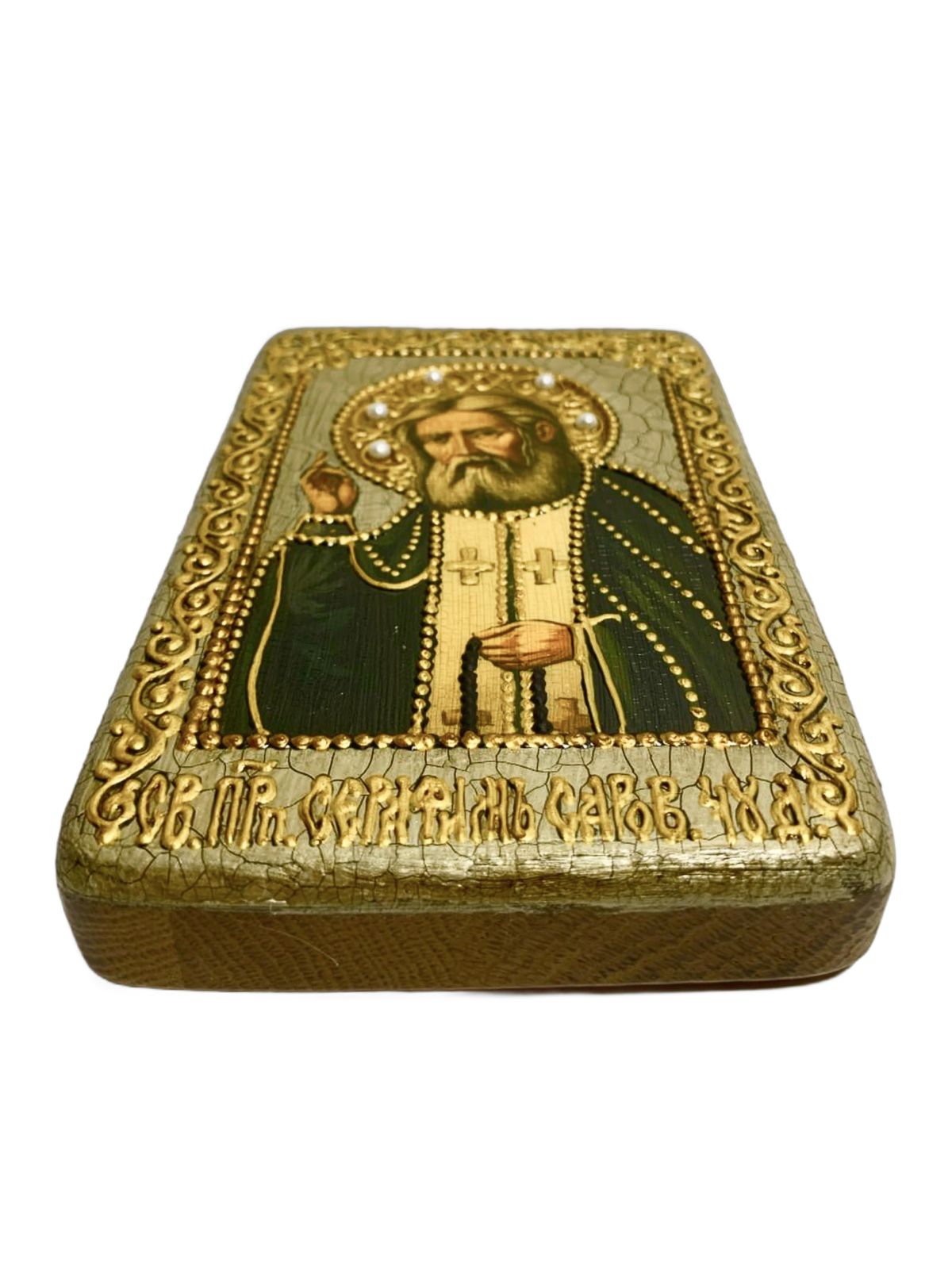 Икона ''Серафим Саровский'' из дуба ручной работы