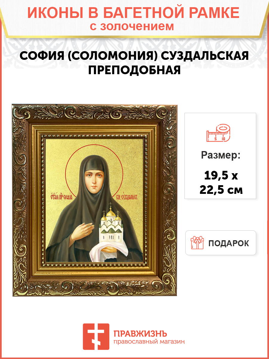 Икона "София (Соломония) Суздальская", св. прп., кнг., с золочением поталью, 10С1-УЛ