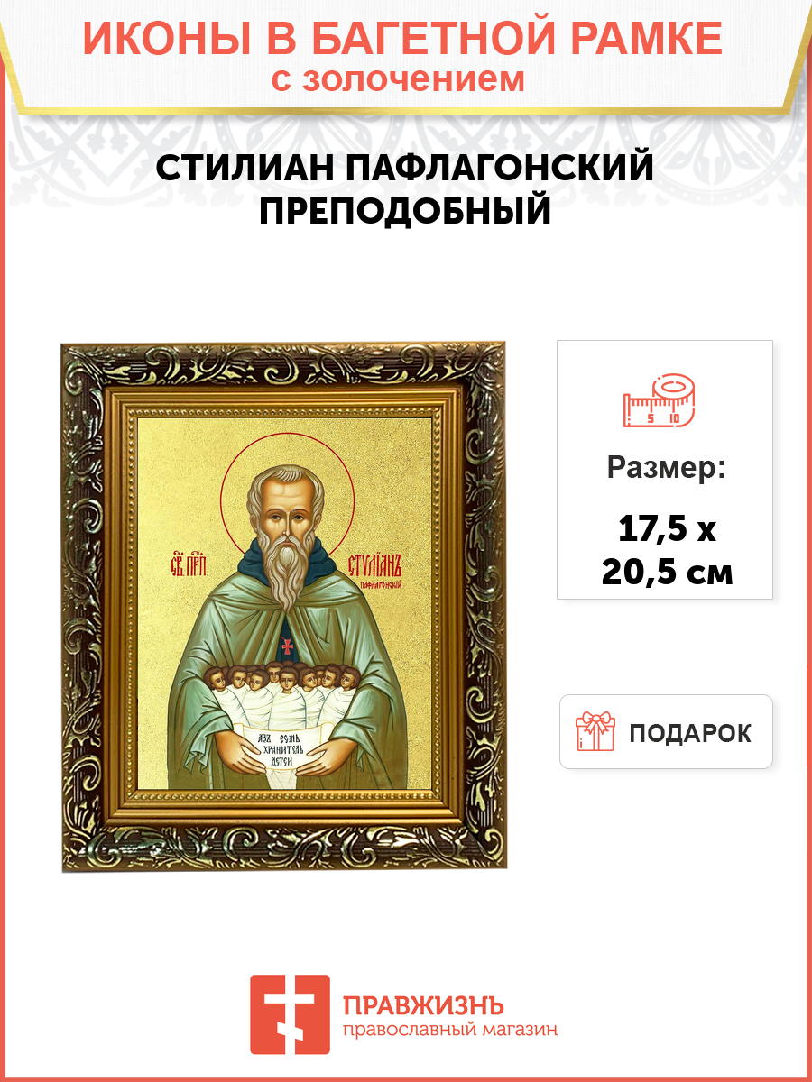 Икона "Стилиан Пафлагонский", св. прп., с золочением поталью, 09С9-УЛ