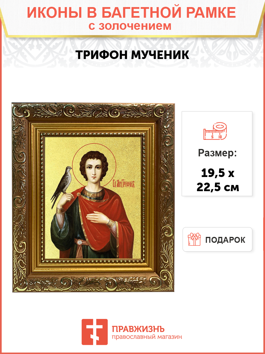 Икона "Трифон", св. мч., с золочением поталью, 09110-УЛ