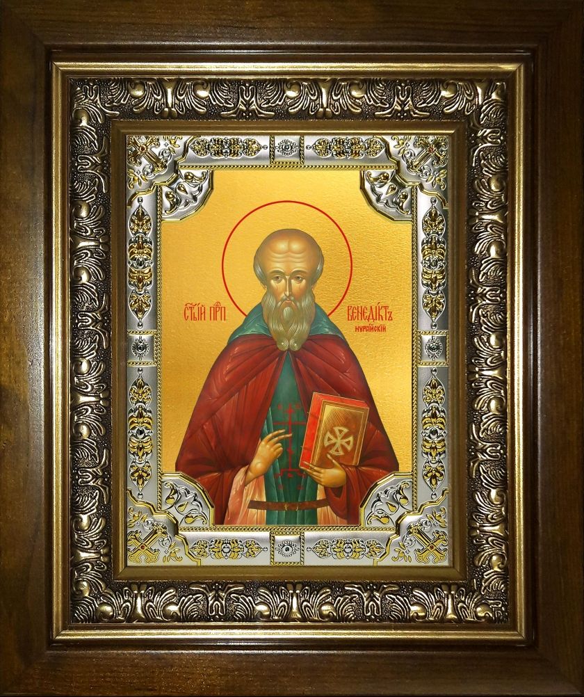 Икона Венедикт Нурсийский преподобный в деревянном киоте