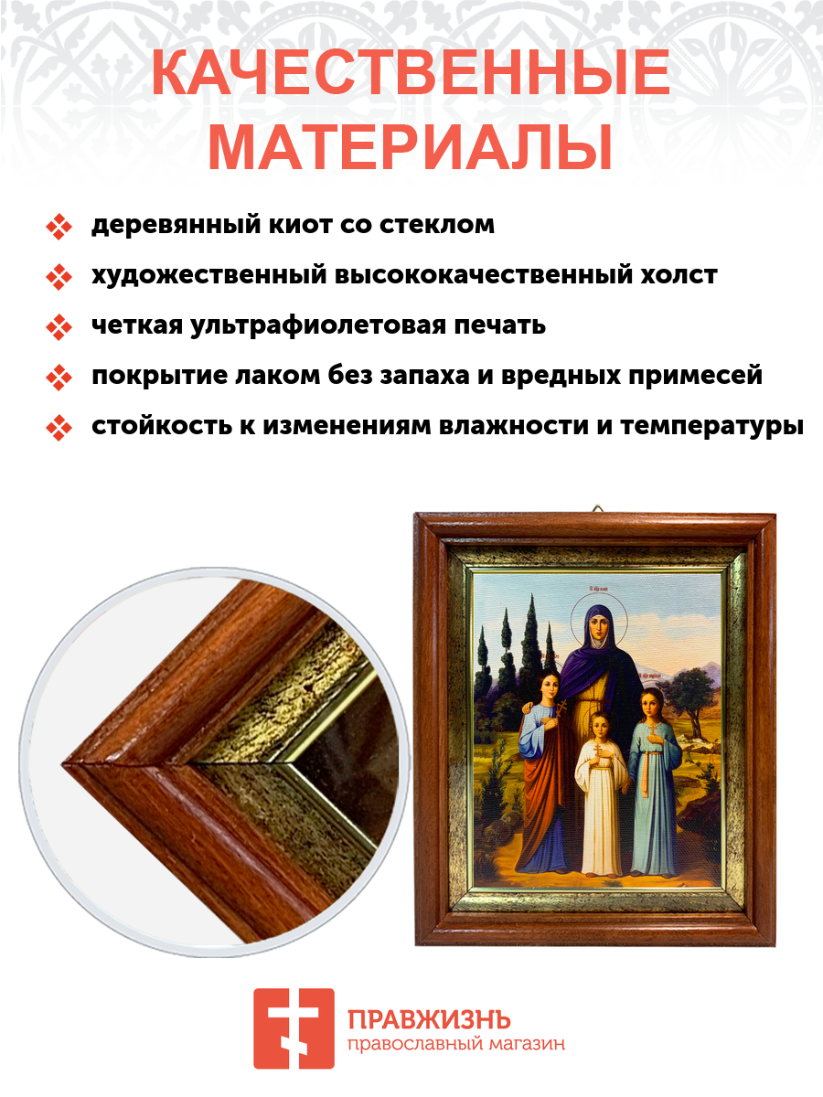 Именная икона Вера Надежда Любовь и София Римские с кипарисами на холсте в киоте 044