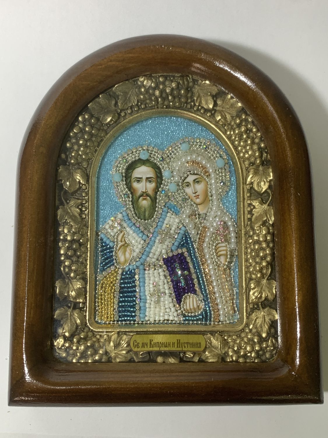 Икона именная Киприан Священномученик и Иустина Мученица 084 17 см Литография A-0047-1_YAP
