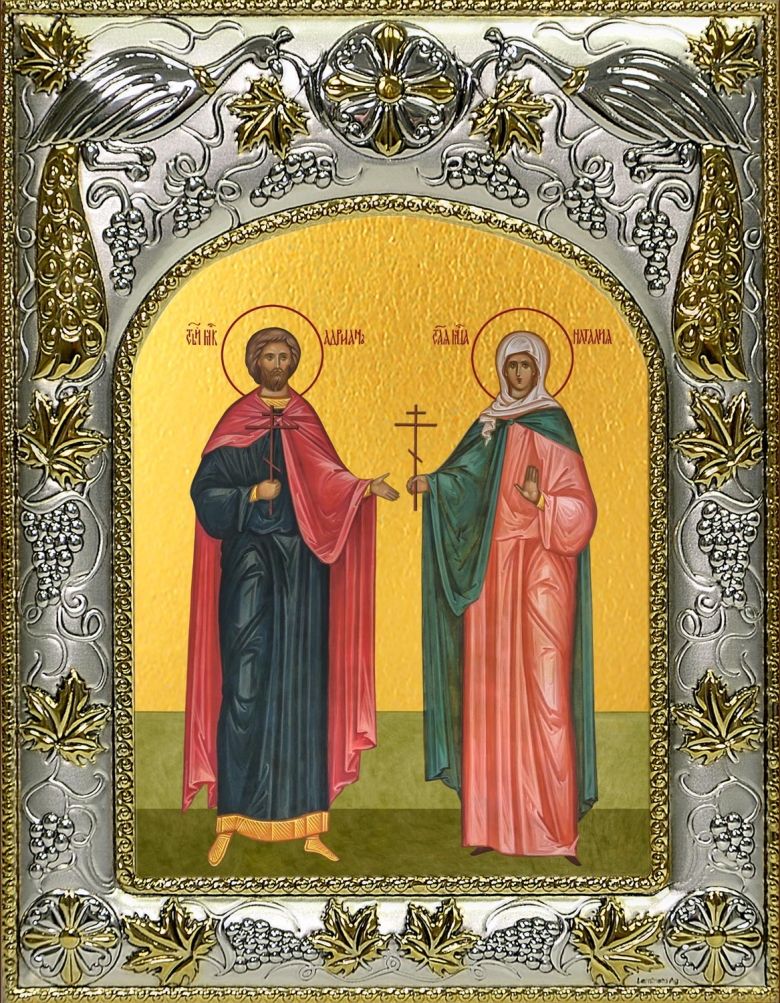 Икона складень Адриа и Наталия мученики и Ангел Хранитель 14 х 18 см