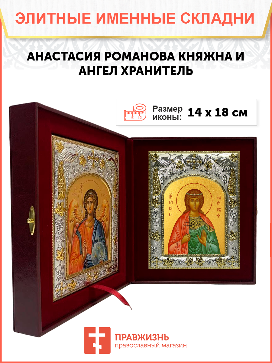 Икона складень Анастасия Романова княжна и Ангел Хранитель 14 х 18 см