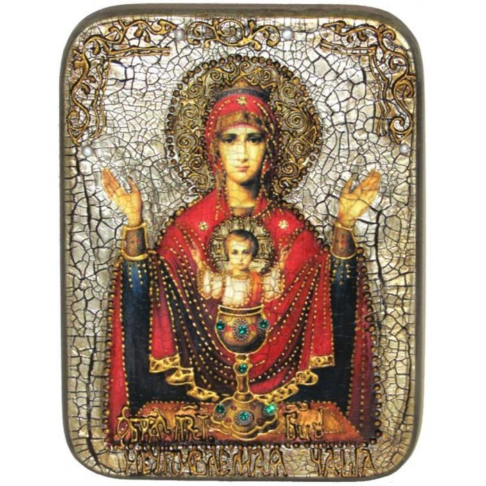 Икона ''Богородица Неупиваемая чаша'' ручной работы Литография 29 см