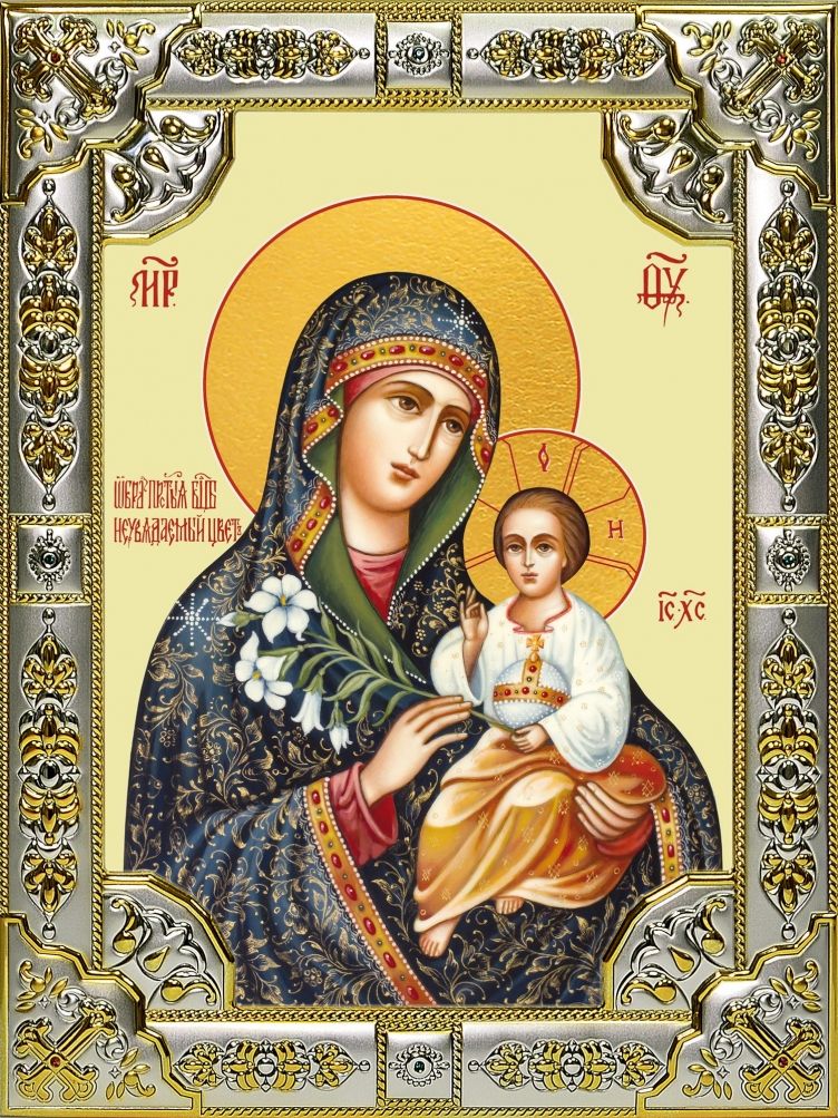 Икона Пресвятой Богородицы НЕУВЯДАЕМЫЙ ЦВЕТ (СЕРЕБРЯНАЯ РИЗА)