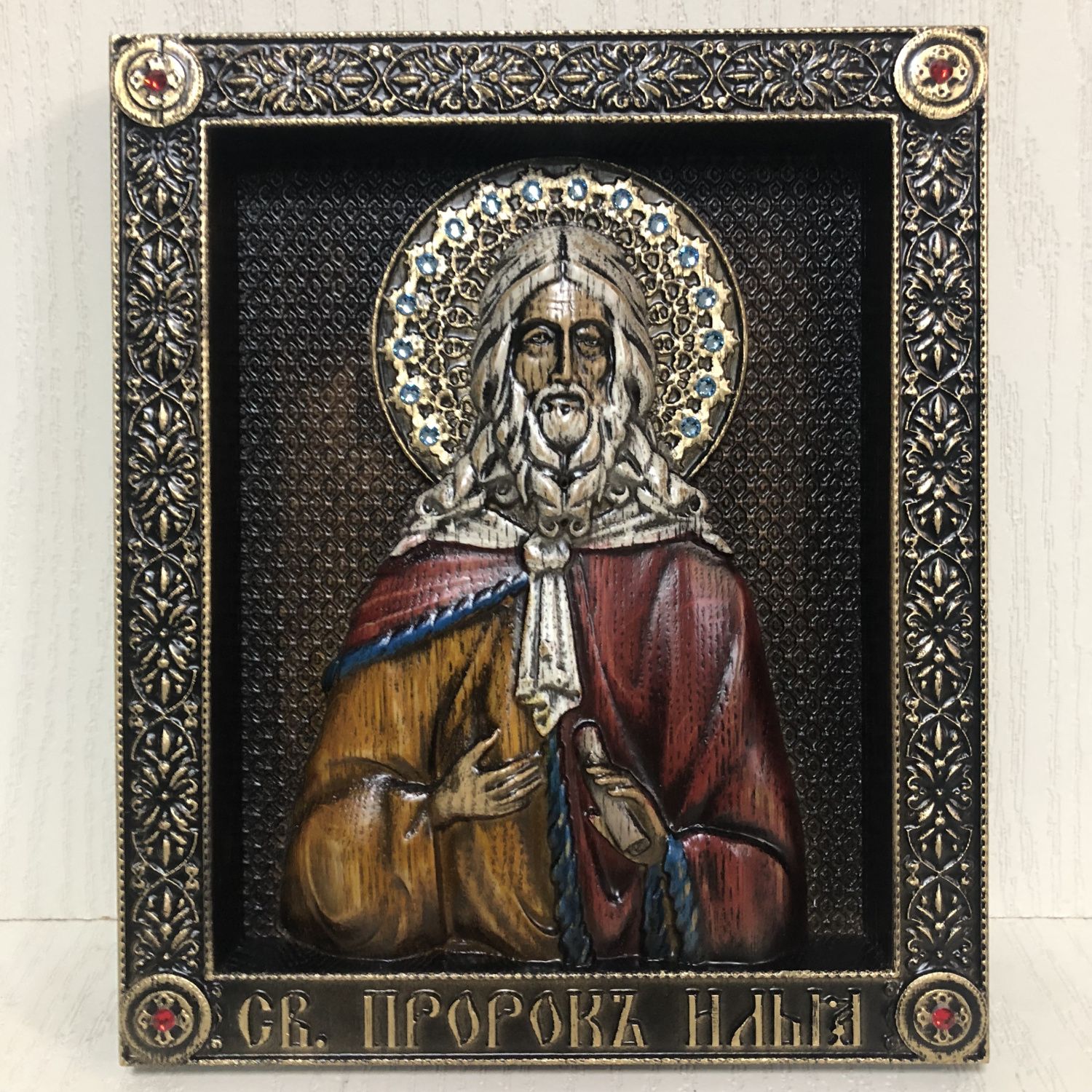 На иконах пророк Илия обычно изображается в пустынной одежде, с суровым выражением лица, иногда сидящим у потока, где его кормят вороны, или возносящимся на колеснице в небо. День памяти — 2 августа (20 июля по старому стилю).