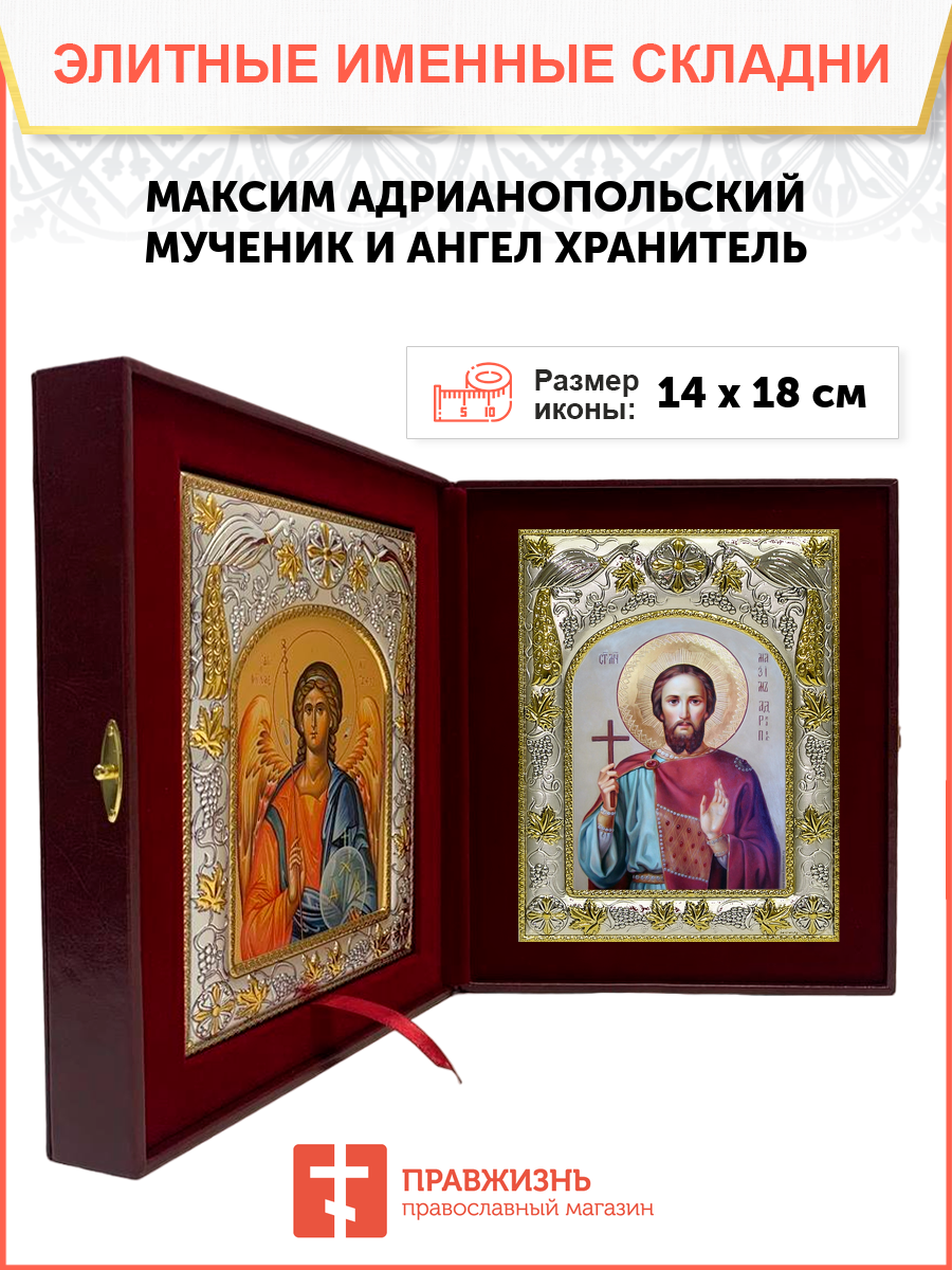 Икона складень Максим Адрианопольский мученик и Ангел Хранитель 14 х 18 см