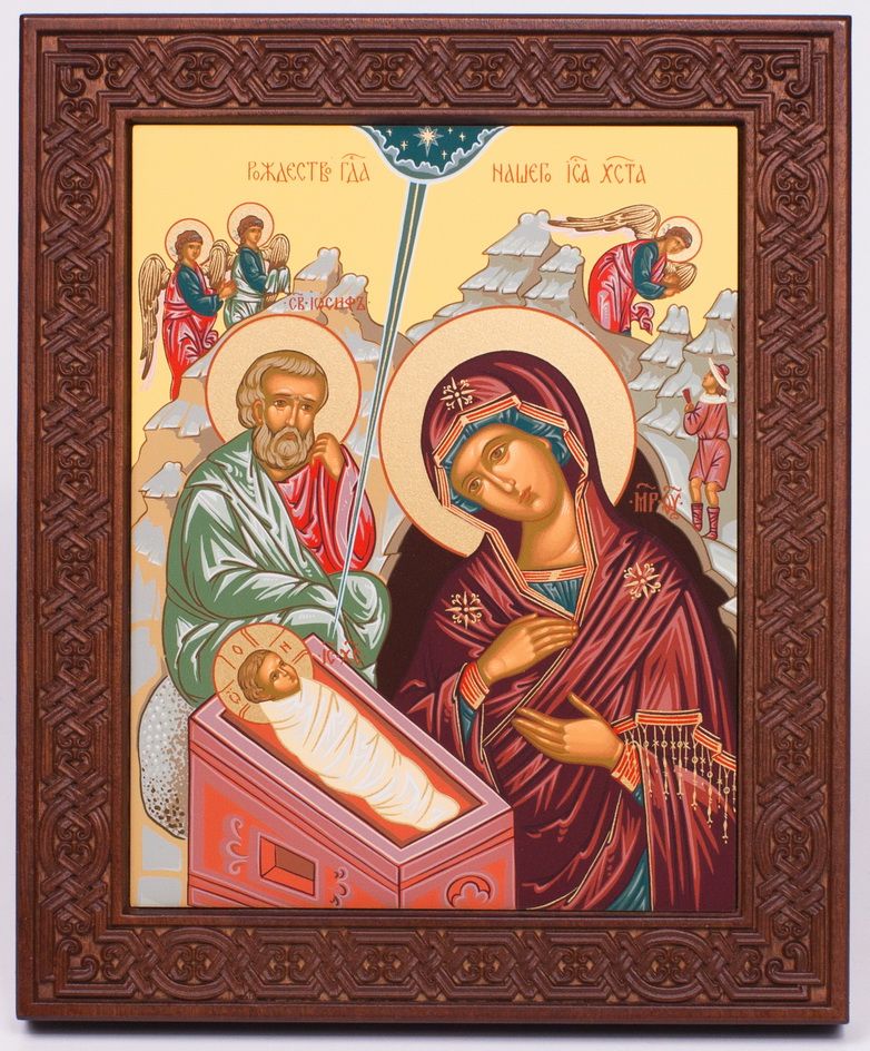 Икона на дереве 18х22 прокат, ковчег с резным обрамлением, упаковка Рождество Христово 3
