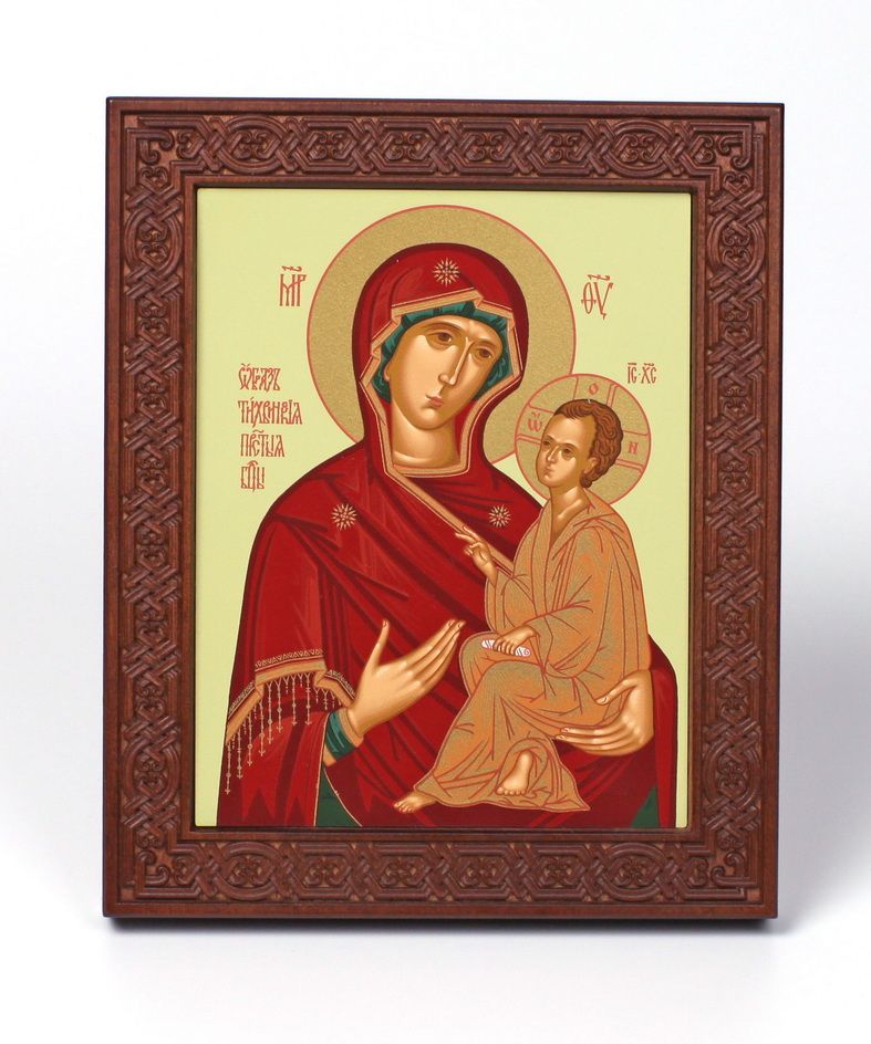 Икона на дереве 18х22 прокат, ковчег с резным обрамлением, упаковка Тихвинская БМ