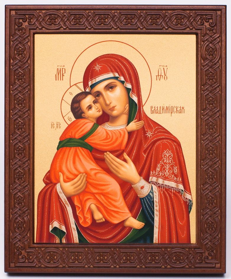 Икона на дереве 18х22 прокат, ковчег с резным обрамлением, упаковка Владимирская БМ 1