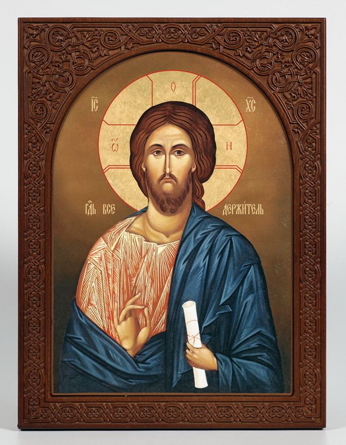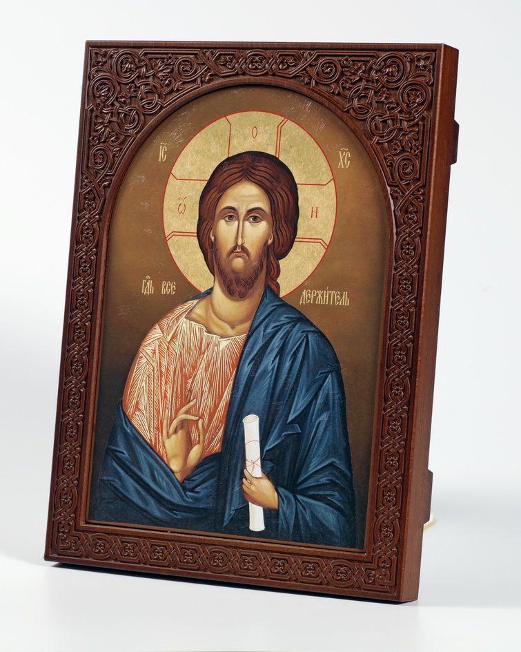 Икона на дереве 25х35 изображение арочное, ковчег с резным обрамлением, упаковка Спаситель