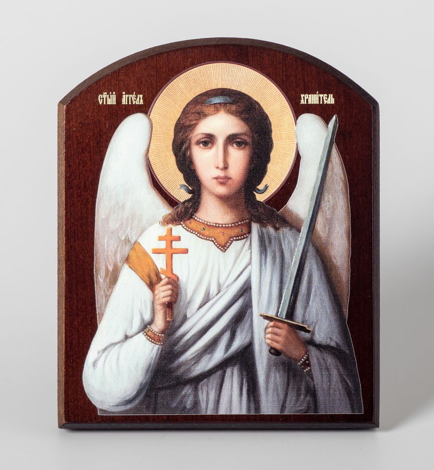 Икона на доске 10х12 объёмная печать, арочная, лак Ангел Хранитель