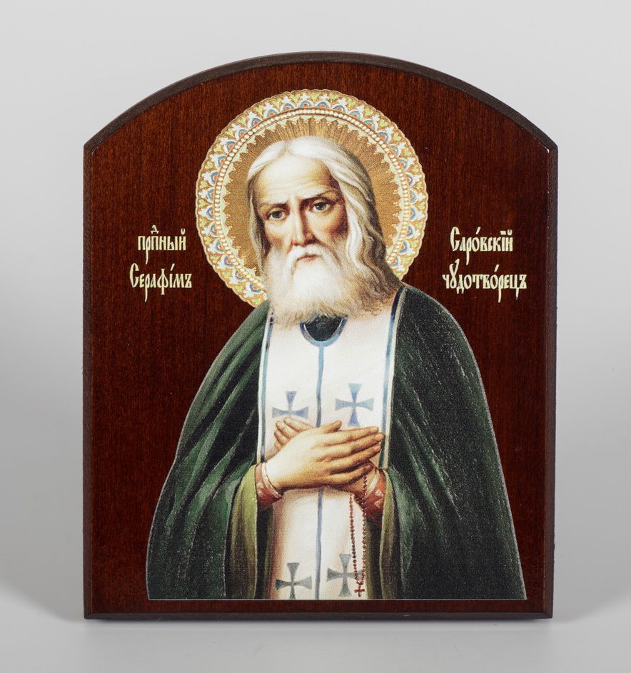 Икона на доске 10х12 объёмная печать, арочная, лак Серафим Саровский